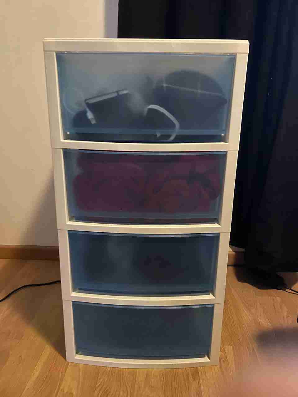 Cajonera azul con blanco ideal para organización de hogar u oficina. En buen estado, muy práctica y ligera.