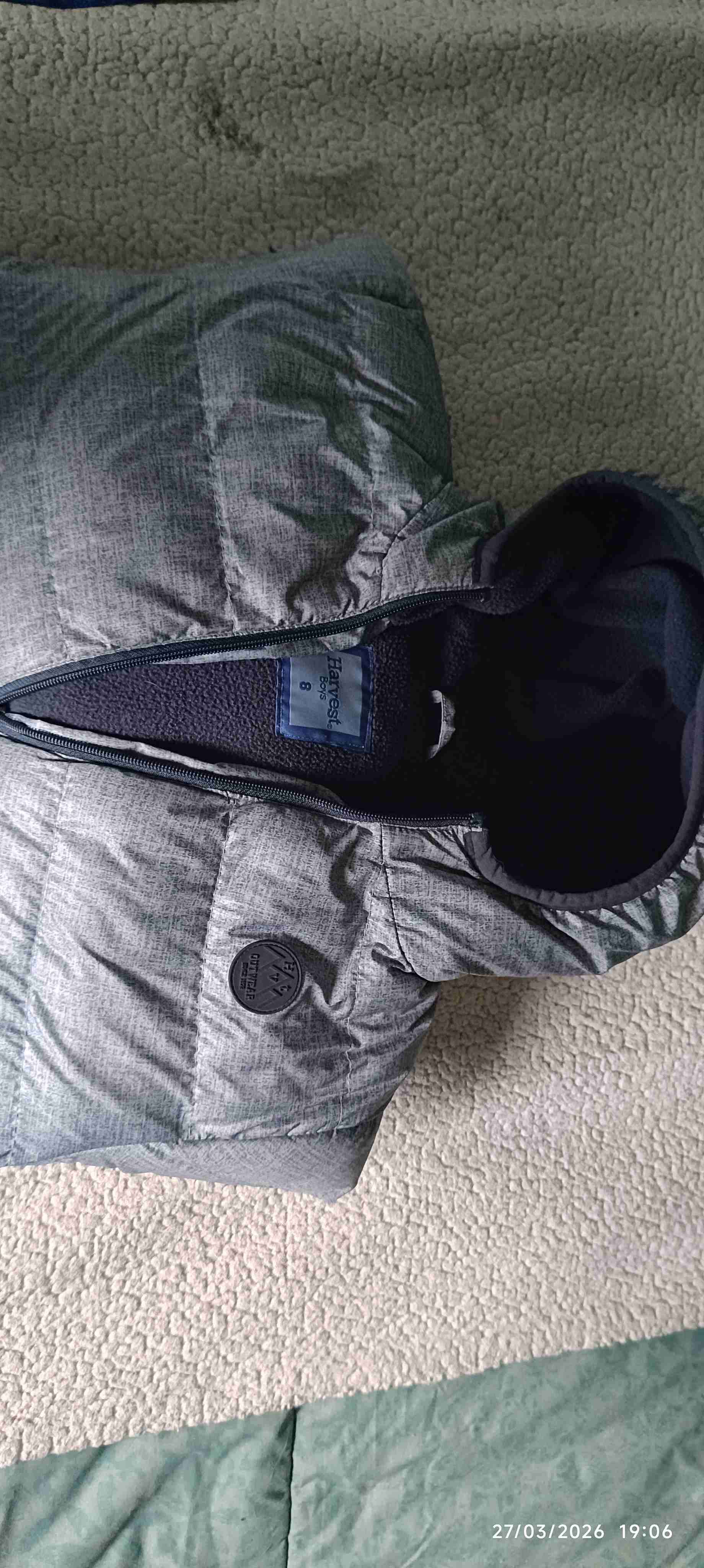 Parka gris con capucha talla 8 de niño