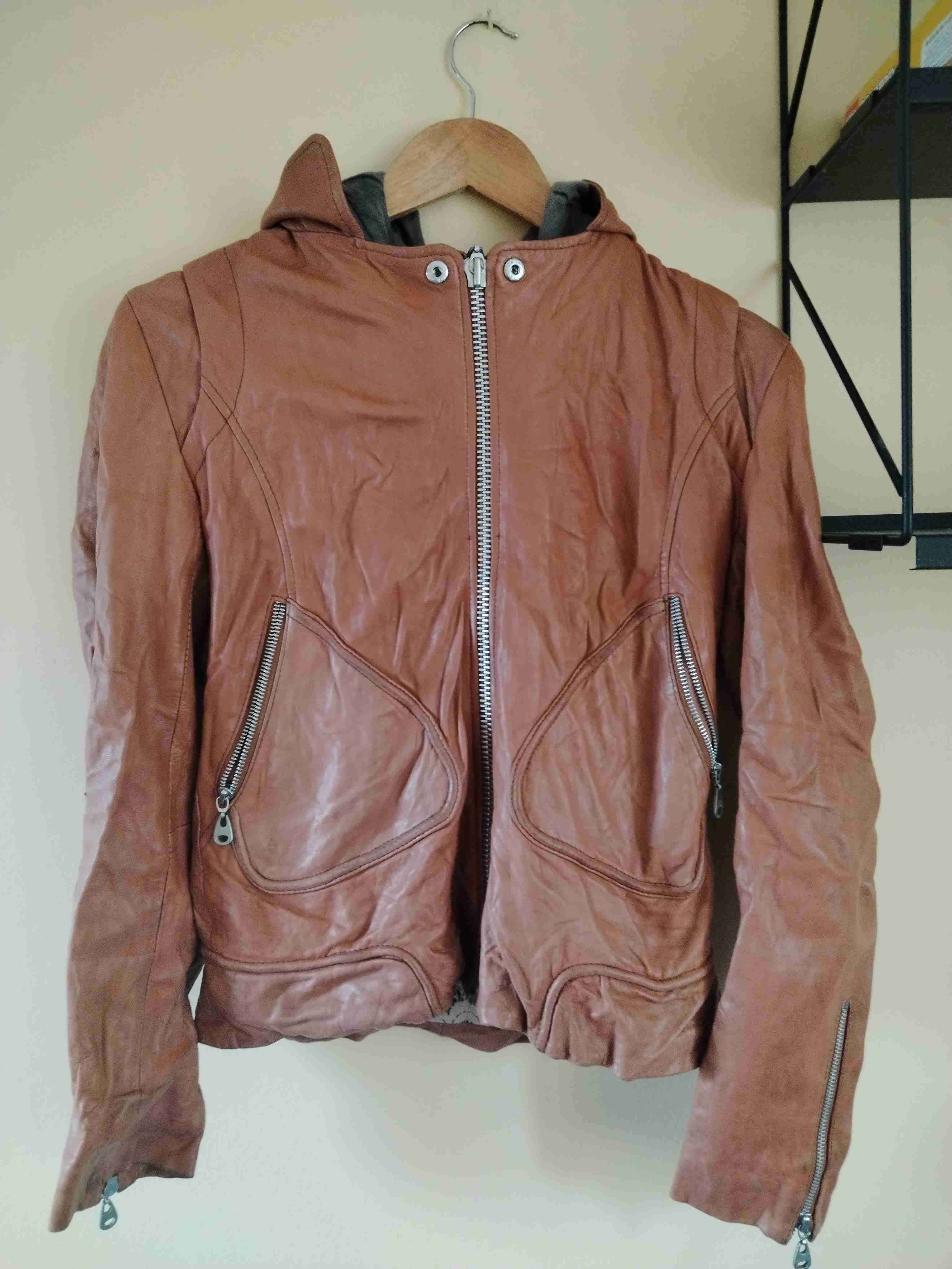 Chaqueta estilo casual, color café con cierre frontal y capucha. En buen estado, ideal para el otoño.