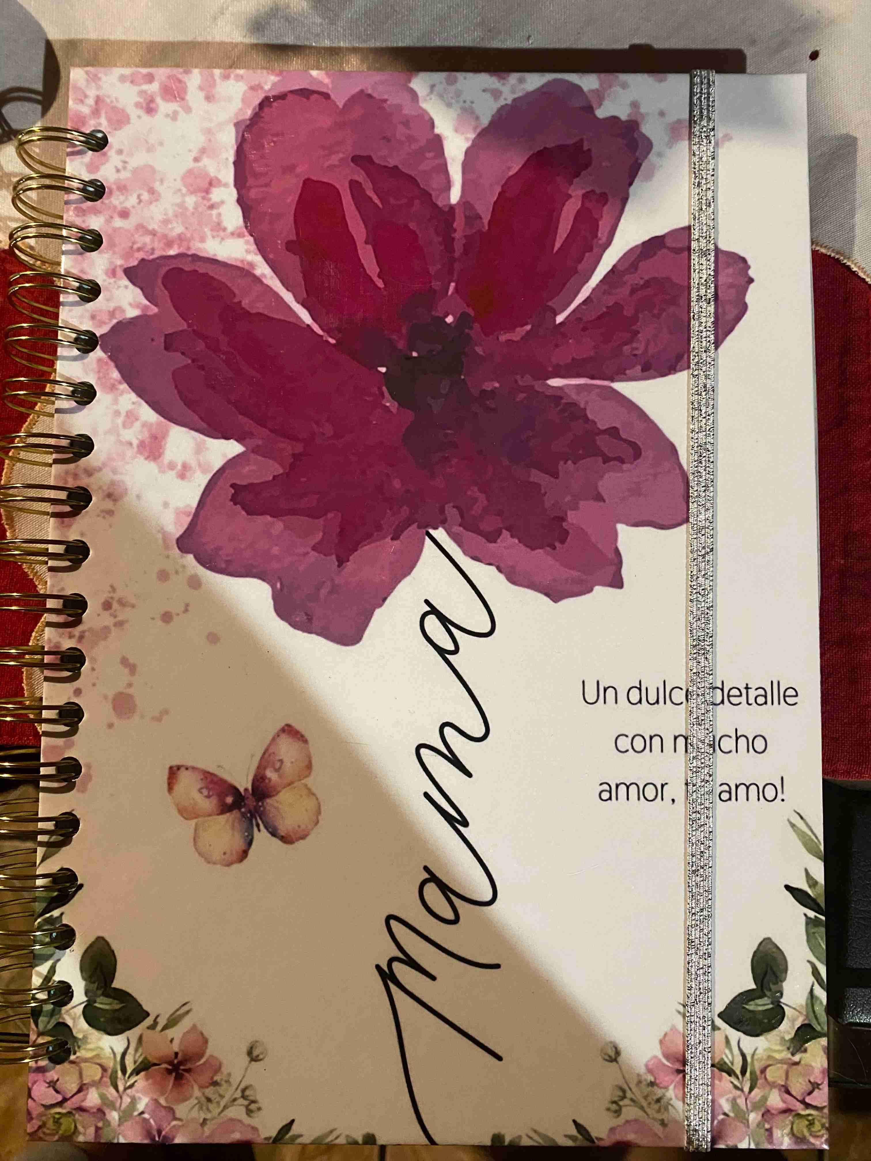 Cuaderno de notas con diseño floral y dedicatoria para mamá. Ideal para regalo.