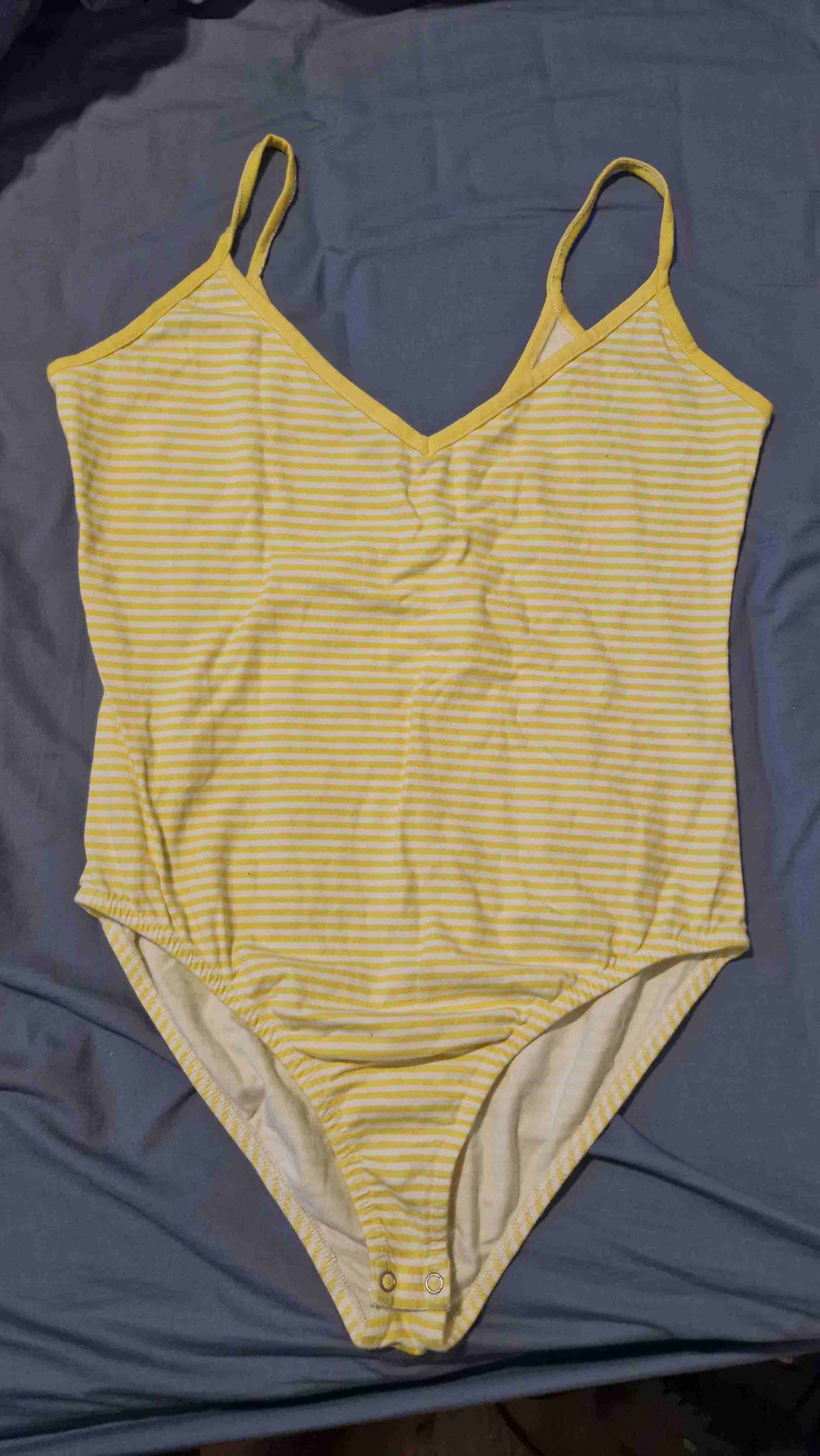 Body amarillo con rayas blancas, ideal para días de verano. En buen estado y cómodo.