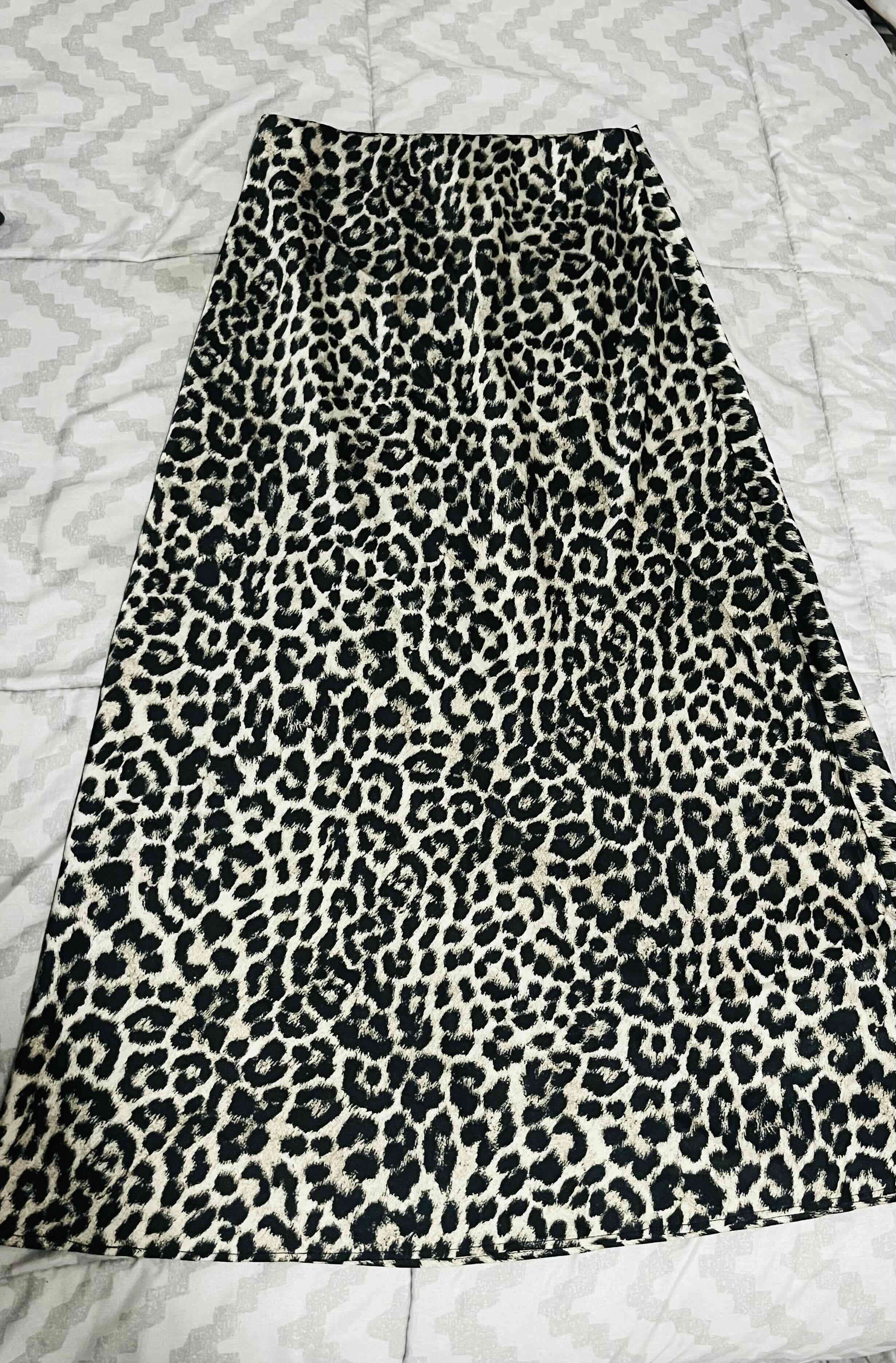 Falda larga con diseño animal print, perfecta para un look audaz y moderno. En buen estado.