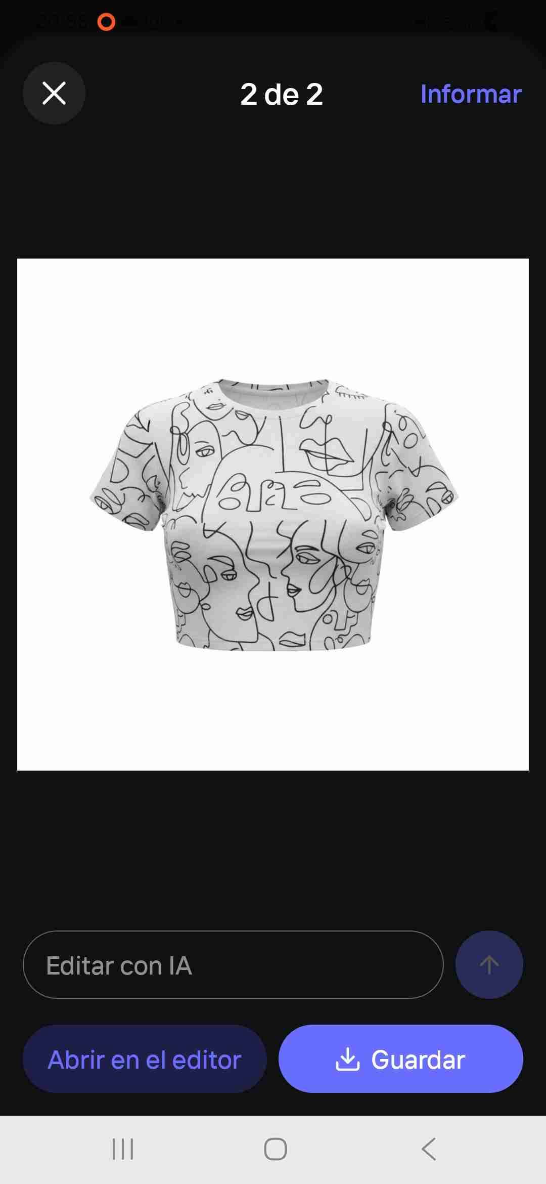 Polera corta de color blanco con diseño artístico de caras en negro. Estilo moderno y casual, ideal para el verano. Casi espalda descubierta.