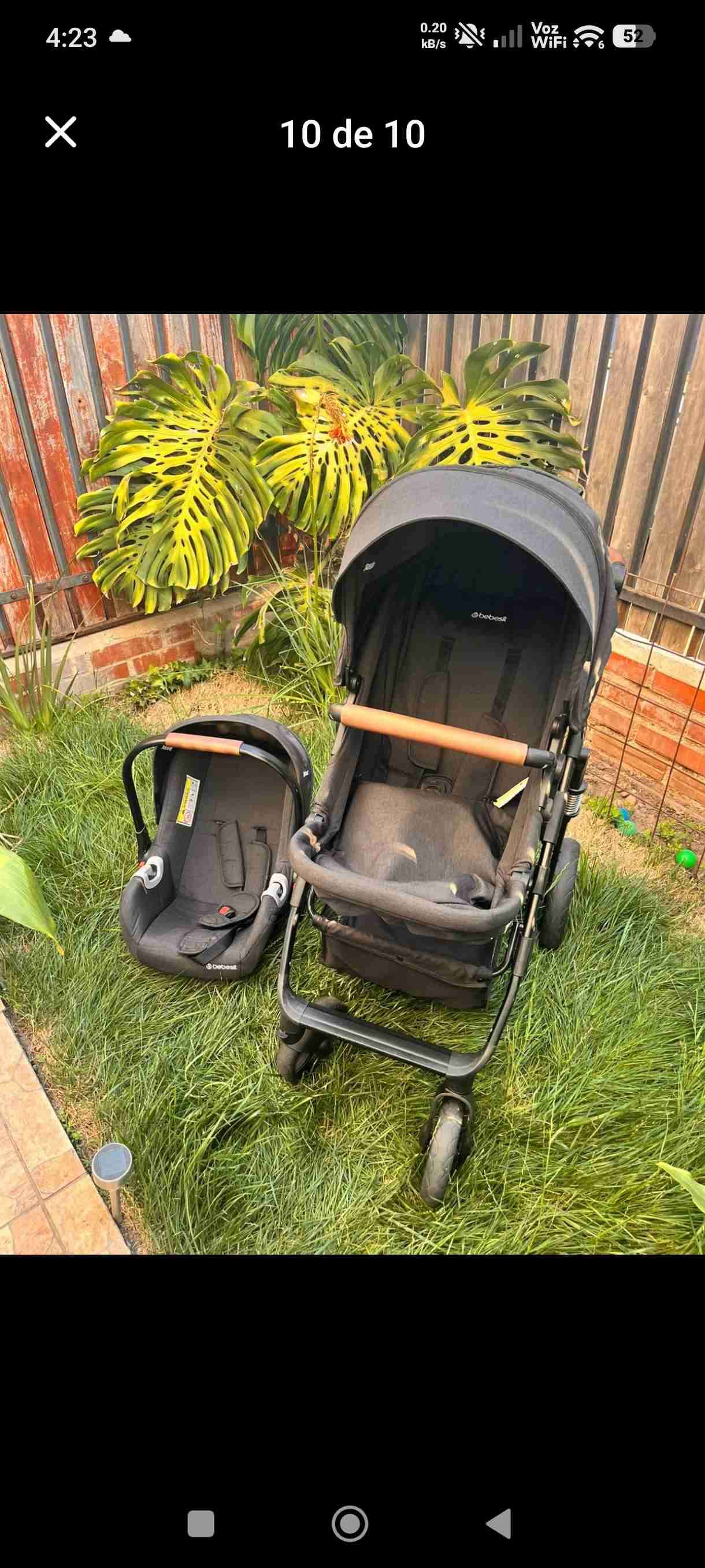 Coche de bebé gris oscuro con silla para auto a juego. En buen estado, ideal para paseos cómodos con tu bebé. Uso versátil.