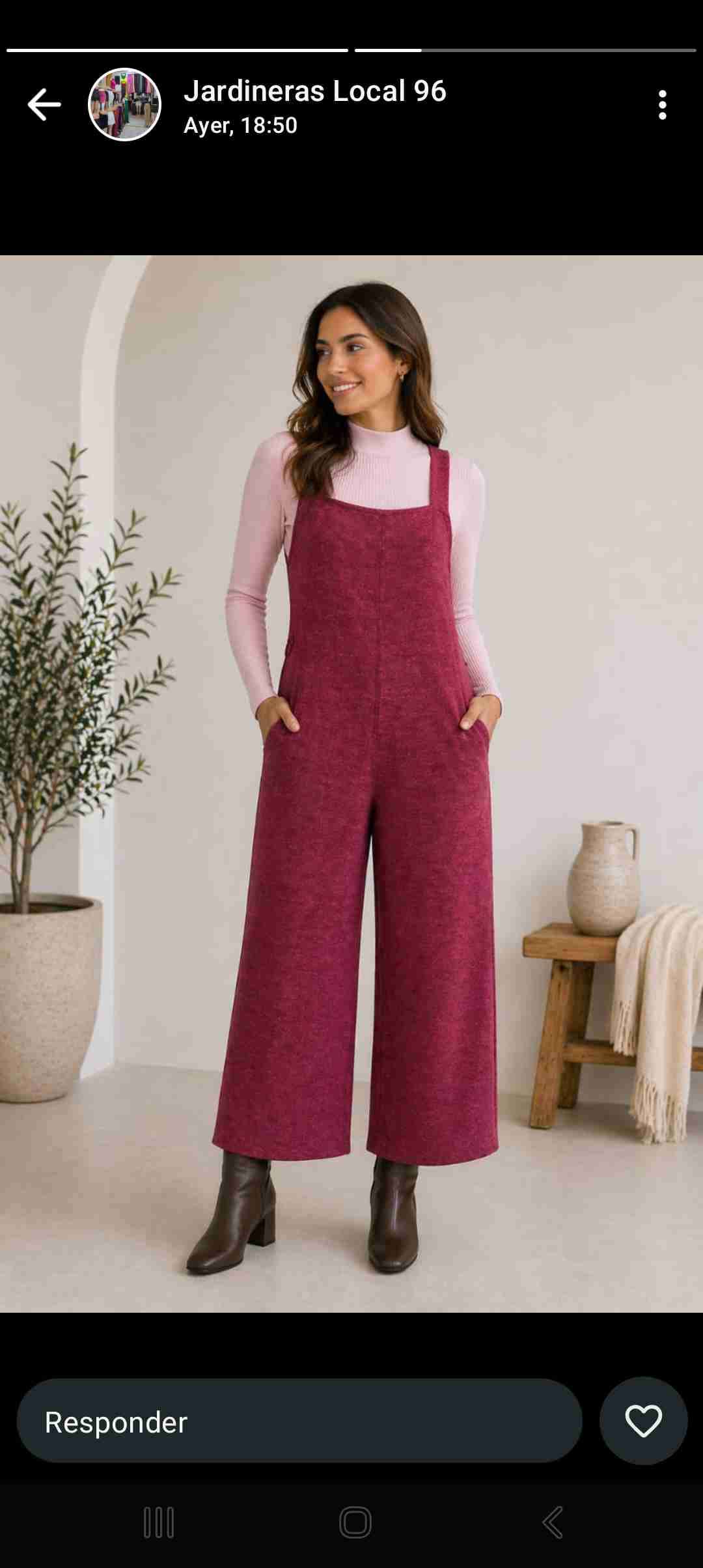 Jardinera de tela suave en color fucsia, ideal para un look casual. En buen estado, perfecta para combinar con botas.