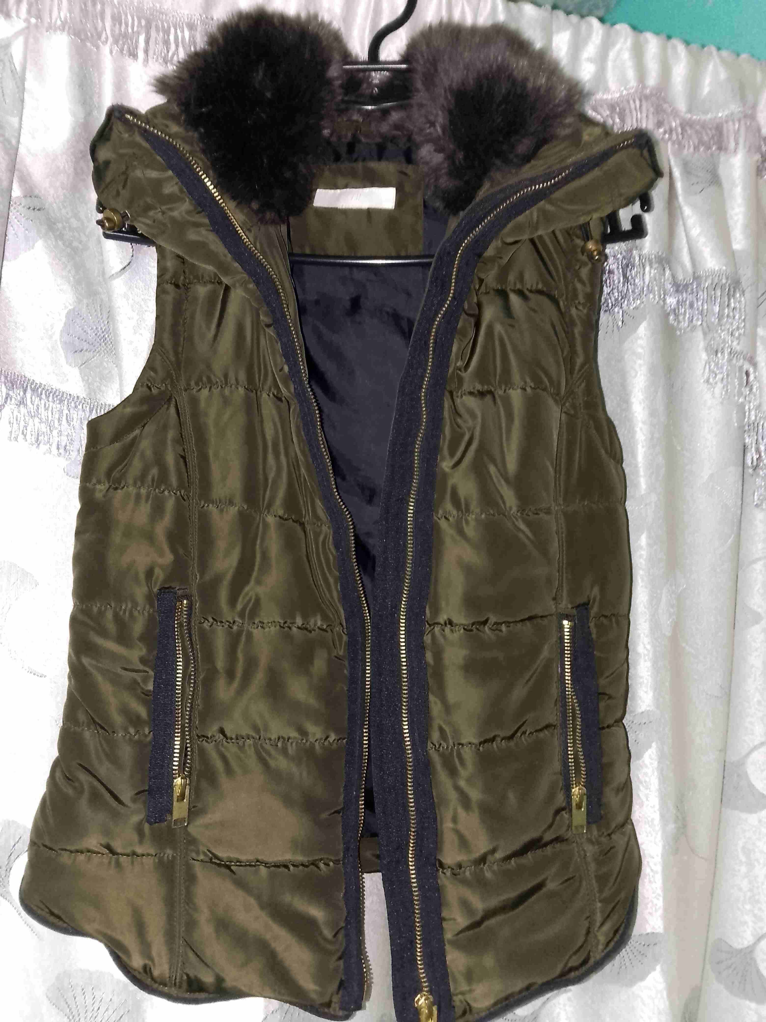 Chaleco sin mangas de color verde con capucha peluda. Ideal para días fríos, en buen estado general.Marca HyM