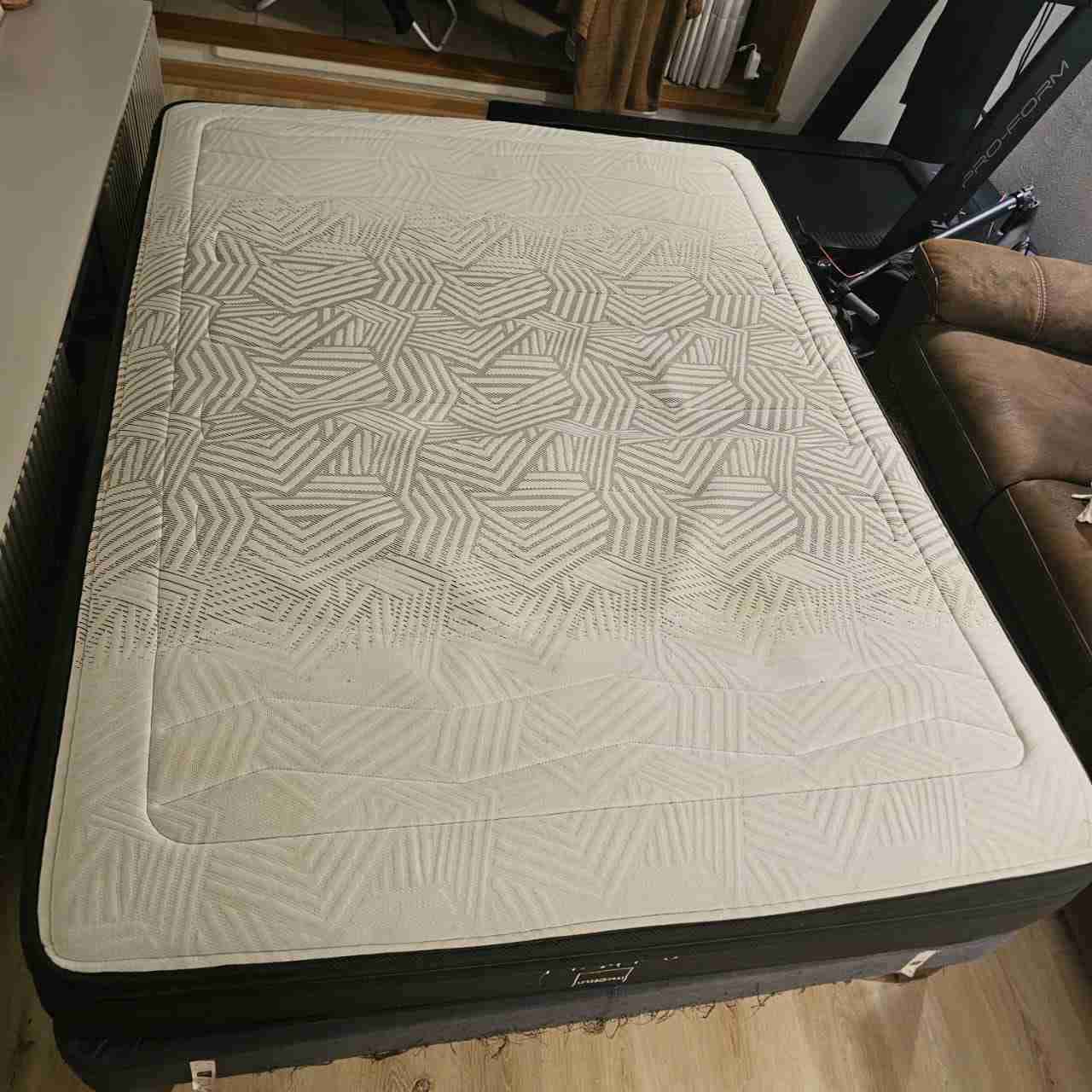 ✔️ Colchón en muy buen estado ✔️ Cómoda y firme Tecnologia moderna rosen tempo La base está estructuralmente firme, con detalles estéticos en la tela inferior (no afecta su uso) 📏 Medidas: Tamaño: 2 plazas estándar Ancho: 150 cm Largo: 190 cm Alto total aprox: 55–65 cm Compatible con ropa de cama estándar de 2 plazas. Entrega: Marin con Portugal