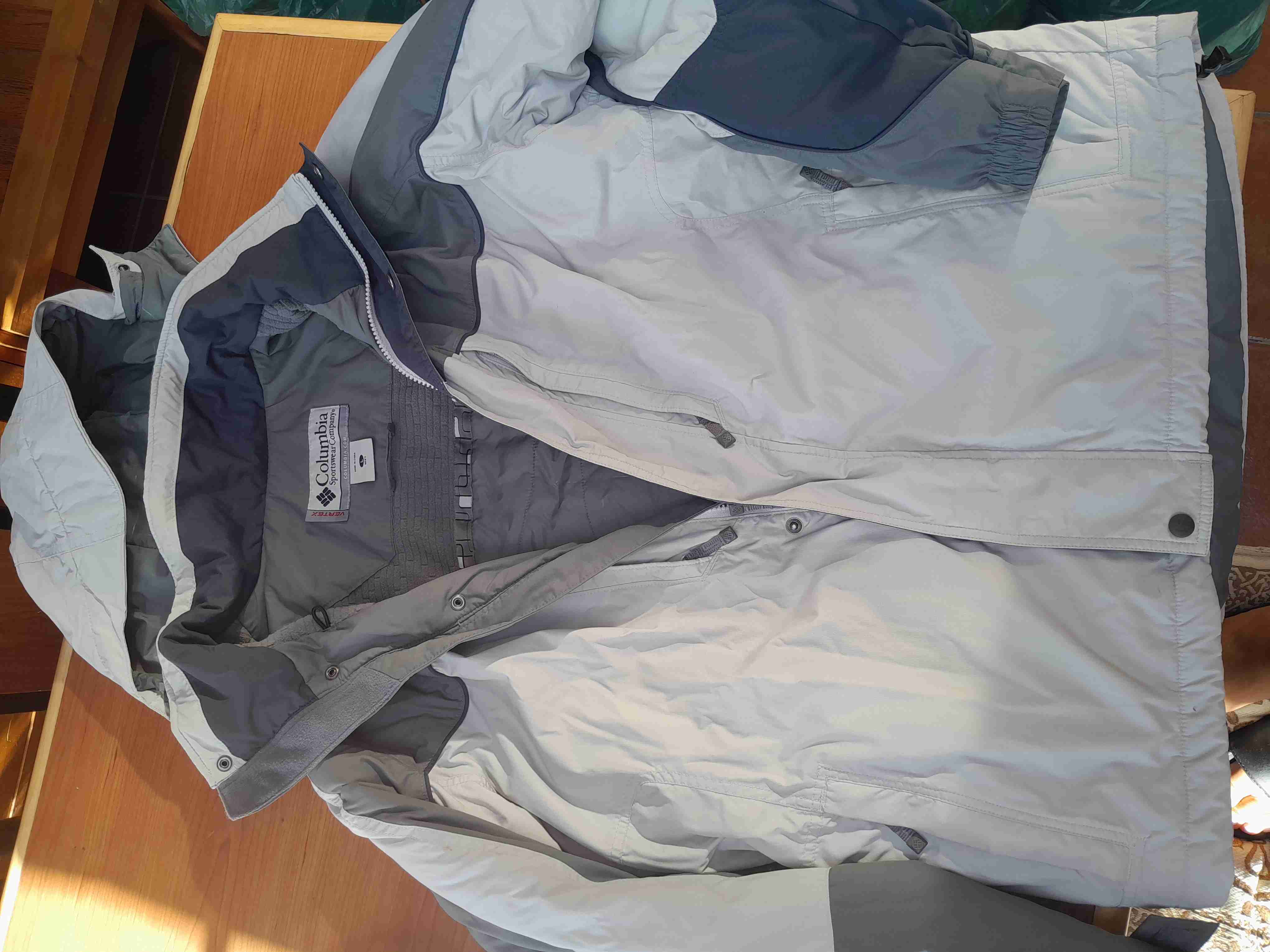 Chaqueta outdoor gris, ideal para actividades al aire libre, en buen estado.
