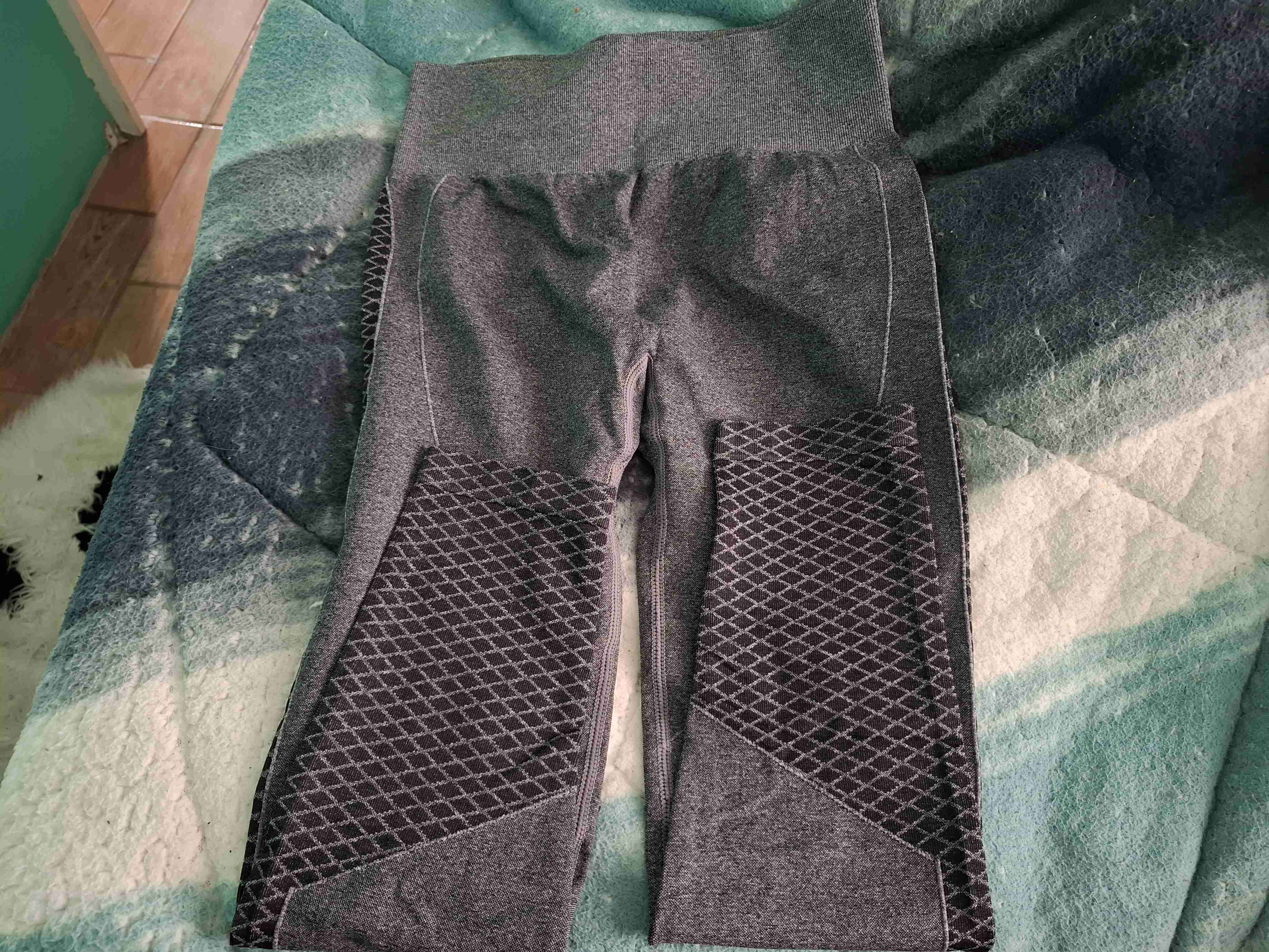 Calzas deportivas en tono gris con estampado geométrico. Talla L