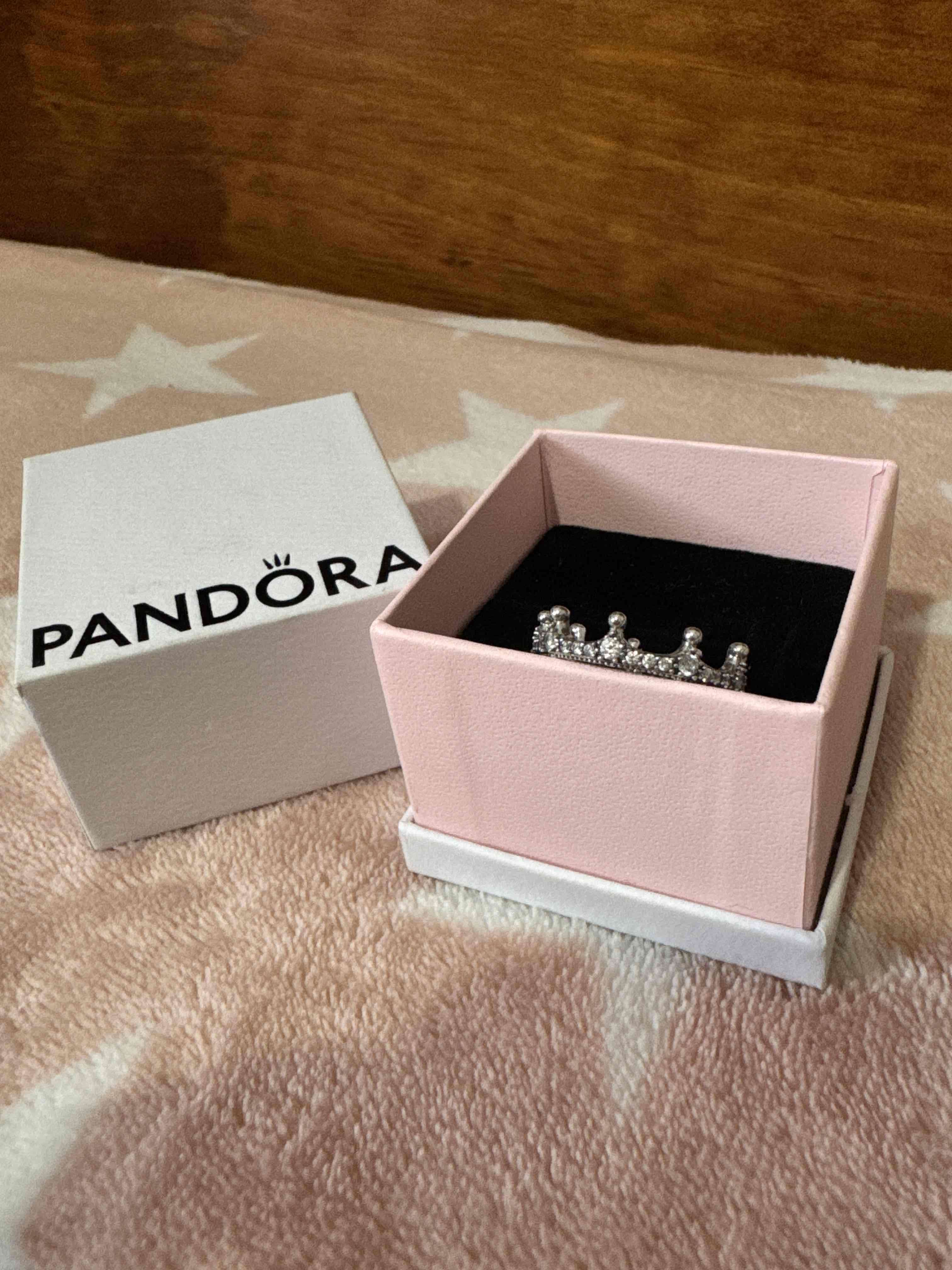 Elegante anillo Pandora original en forma de corona con detalles de cristales brillantes. Perfecto para ocasiones especiales. Nuevo y buen estado.