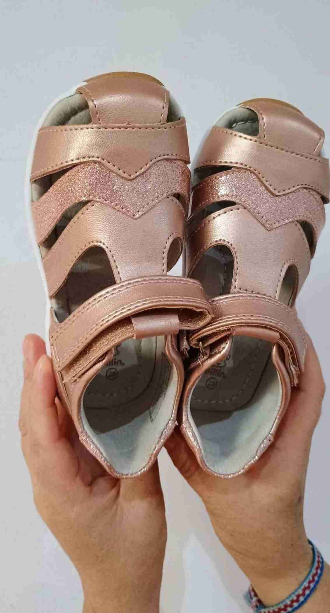 Sandalias rosadas con brillo, perfectas para el verano. Las sandalias son nuevas sin utilizar. También se vende poncho de agua.