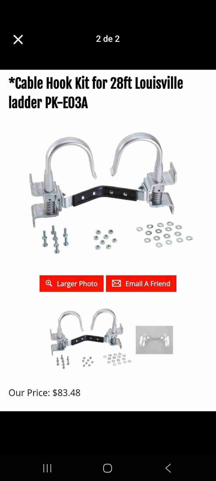 Kit de montaje para asegurar escaleras de 28 pies. Incluye tornillos y accesorios. Ideal para trabajos en altura.