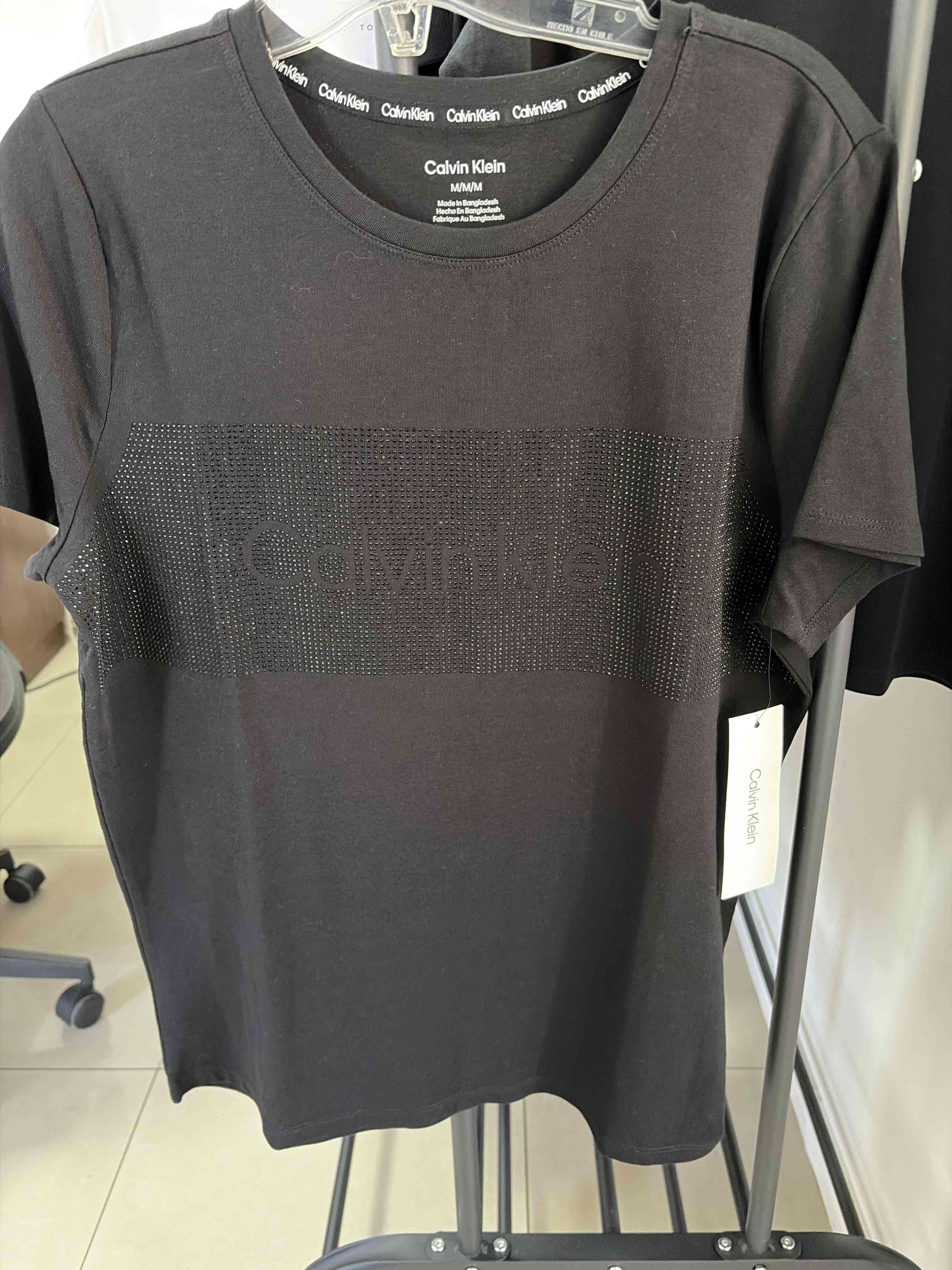 Polera negra Calvin Klein, estilo moderno y casual. Ideal para uso diario.