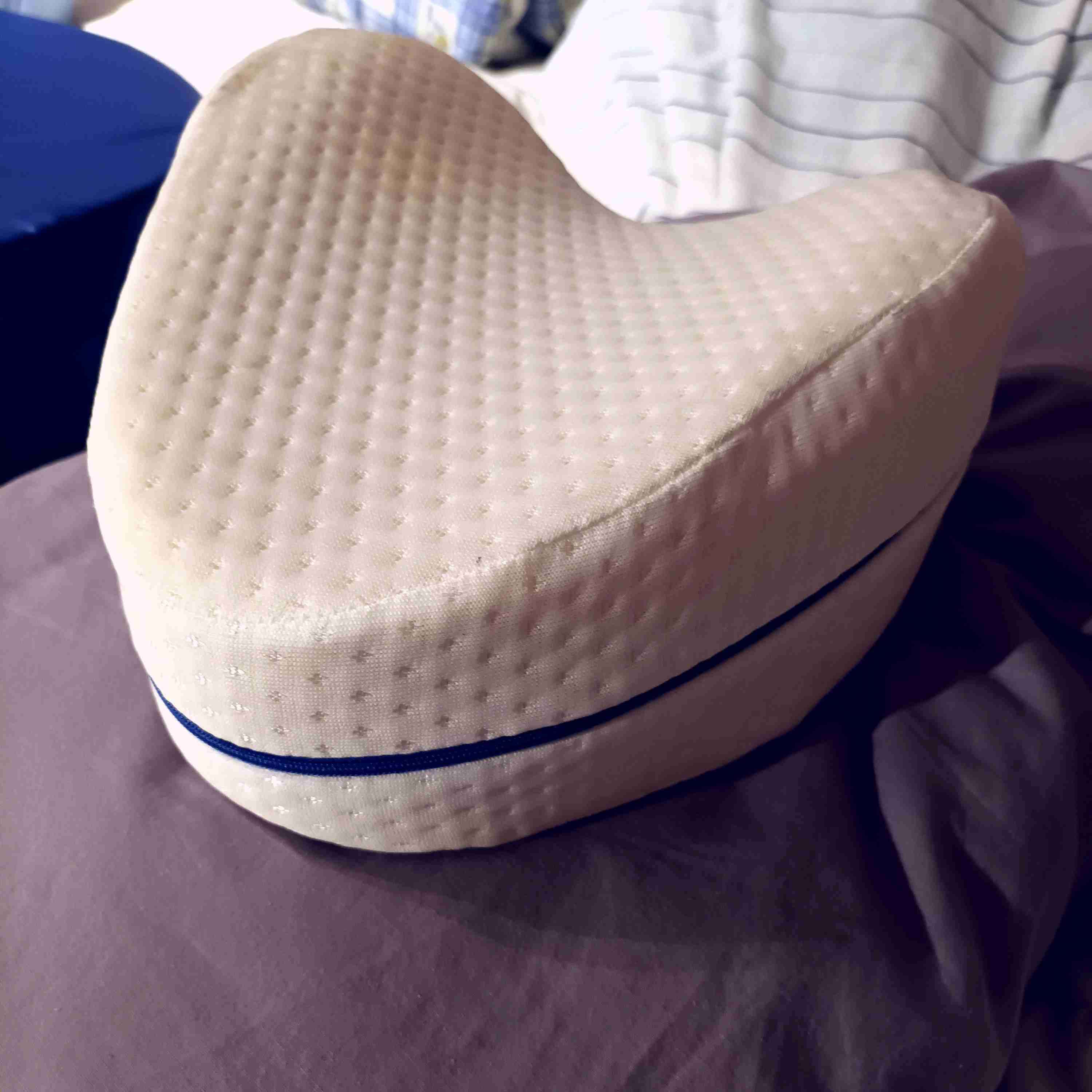 Cojín ortopédico para mejorar postura al dormir. En buen estado, ideal para descanso cómodo.