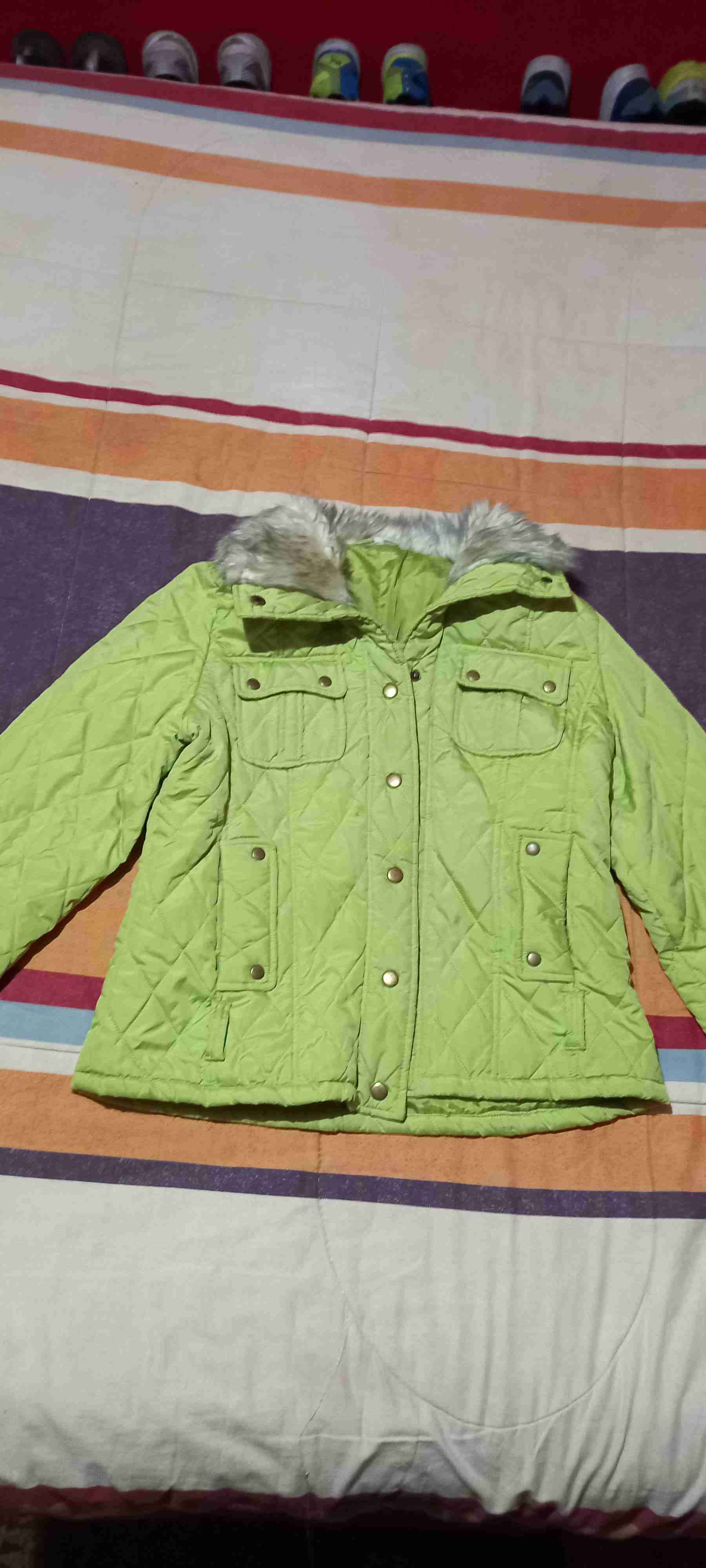 Chaqueta verde acolchada con capucha de piel, ideal para el frío. En buen estado, solo un detalle detalle arreglar en el forro interno(no mide más de 5cm)perfecta para el invierno.