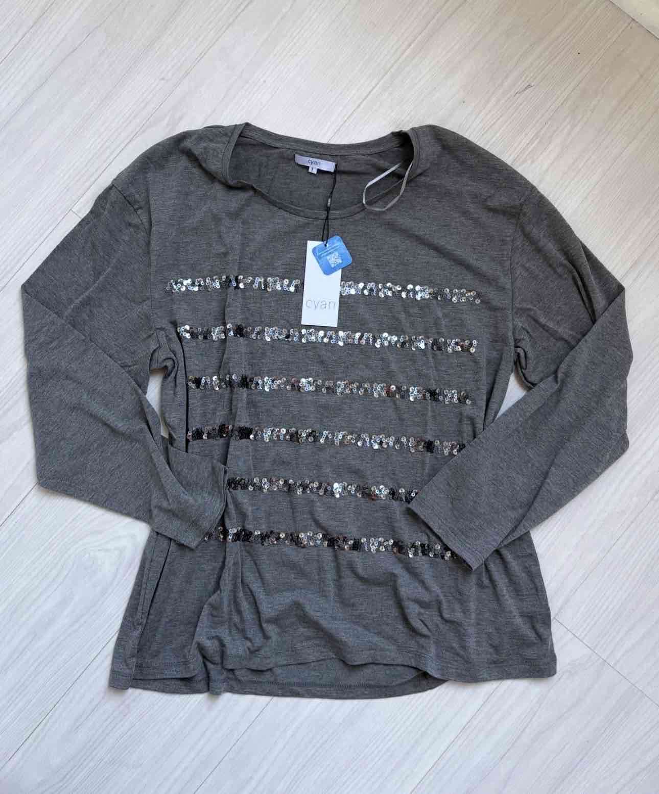 Polera elegante de manga larga en color gris con detalles de lentejuelas. Ideal para salidas casuales. Nuevo con etiqueta.