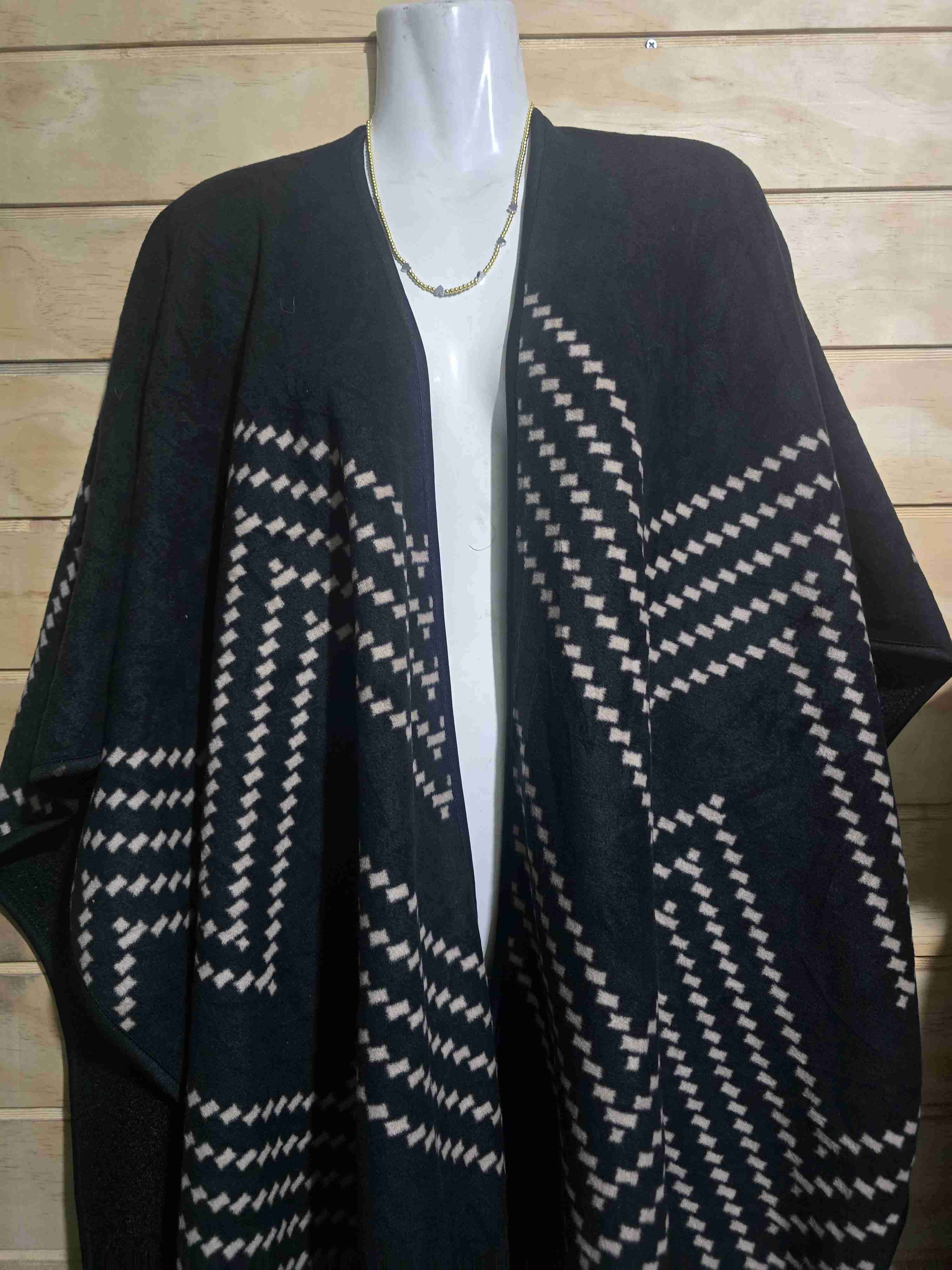 Poncho cálido y elegante, ideal para el invierno. Diseño geométrico en tonos oscuros, perfecto para complementar tu look casual.