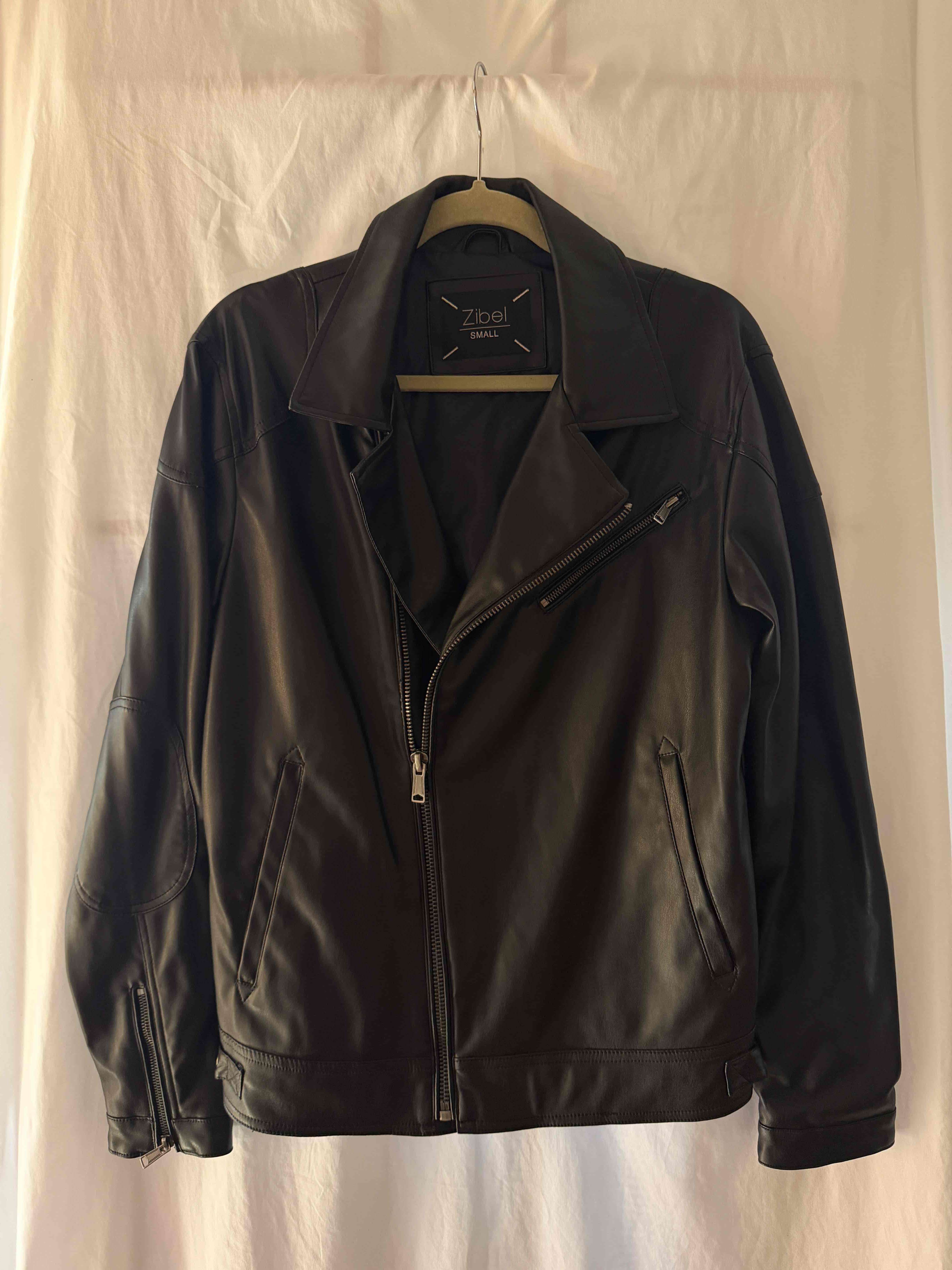 Chaqueta de cuero en buen estado, ideal para estilo casual o elegante. Talla S visible.