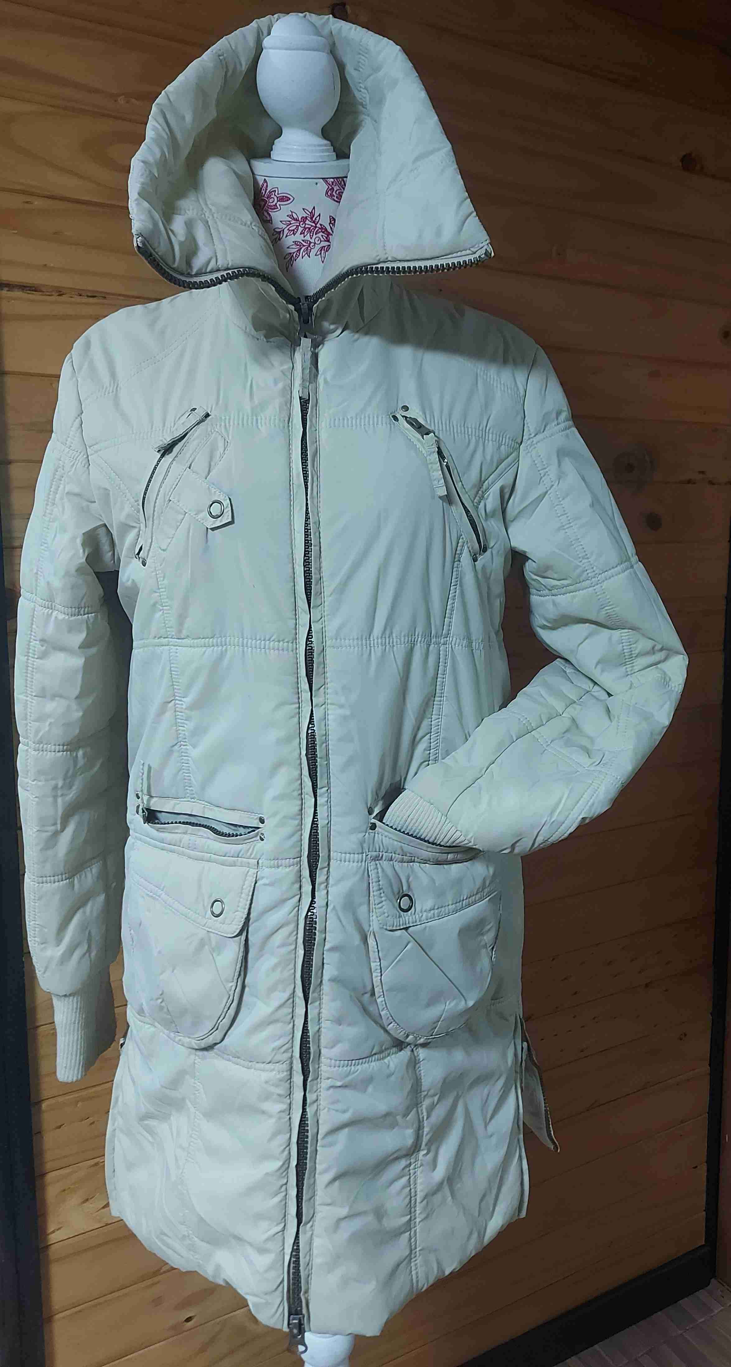 Chaqueta Larga beige,de mujer ideal para climas fríos. En buen estado, con bolsillos grandes y capucha ajustable. Talla-L es más una M.