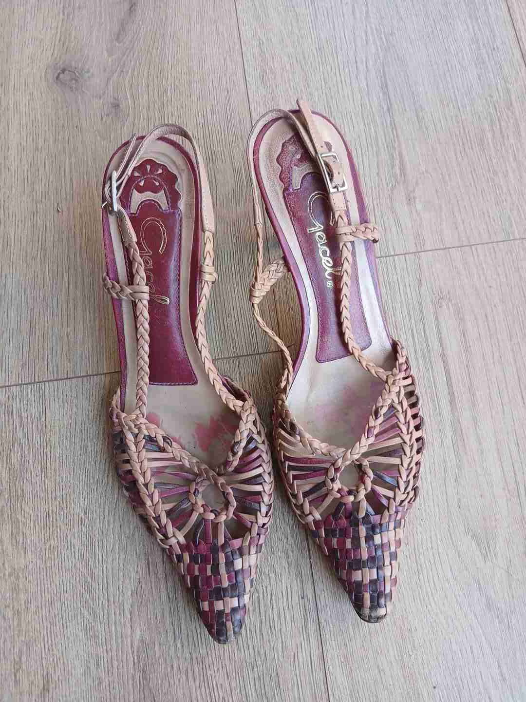 Sandalias tejidas color marrón, perfectas para un look veraniego. En buen estado, con signos leves de uso. Muy cómodos. Marca Gacel.