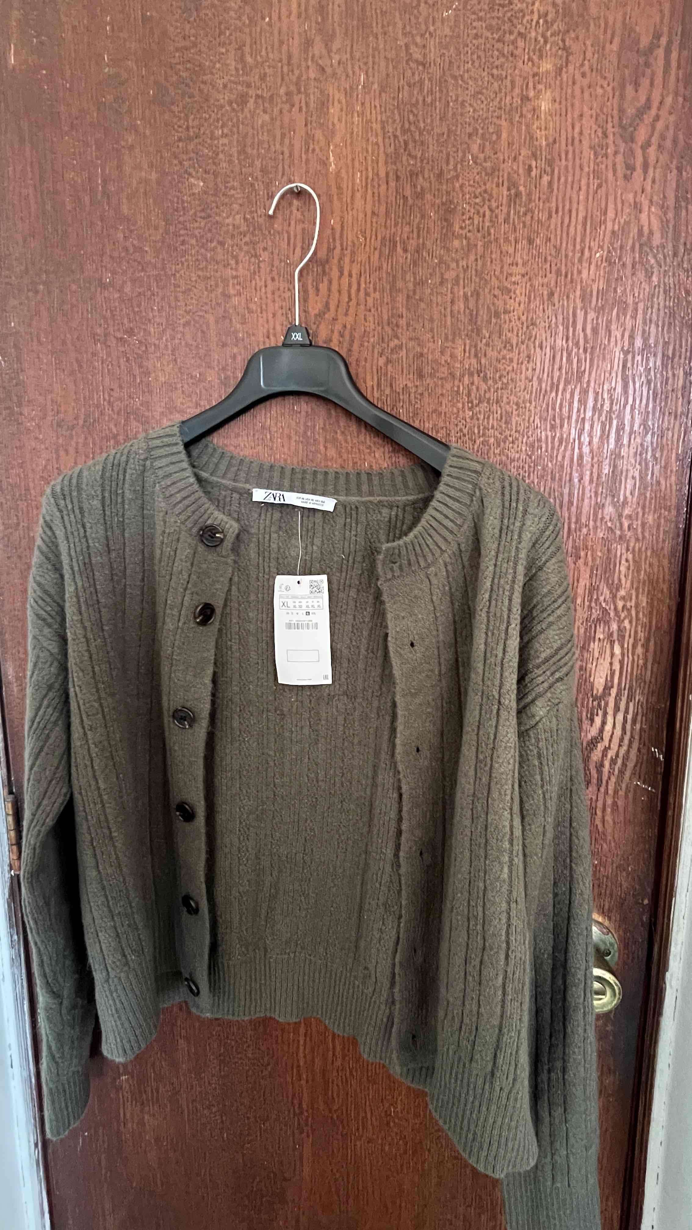 Cardigan de lana en color verde oliva, ideal para días fríos. Estado nuevo, con etiqueta. Talla XL, pero es corto. Marca Zara.