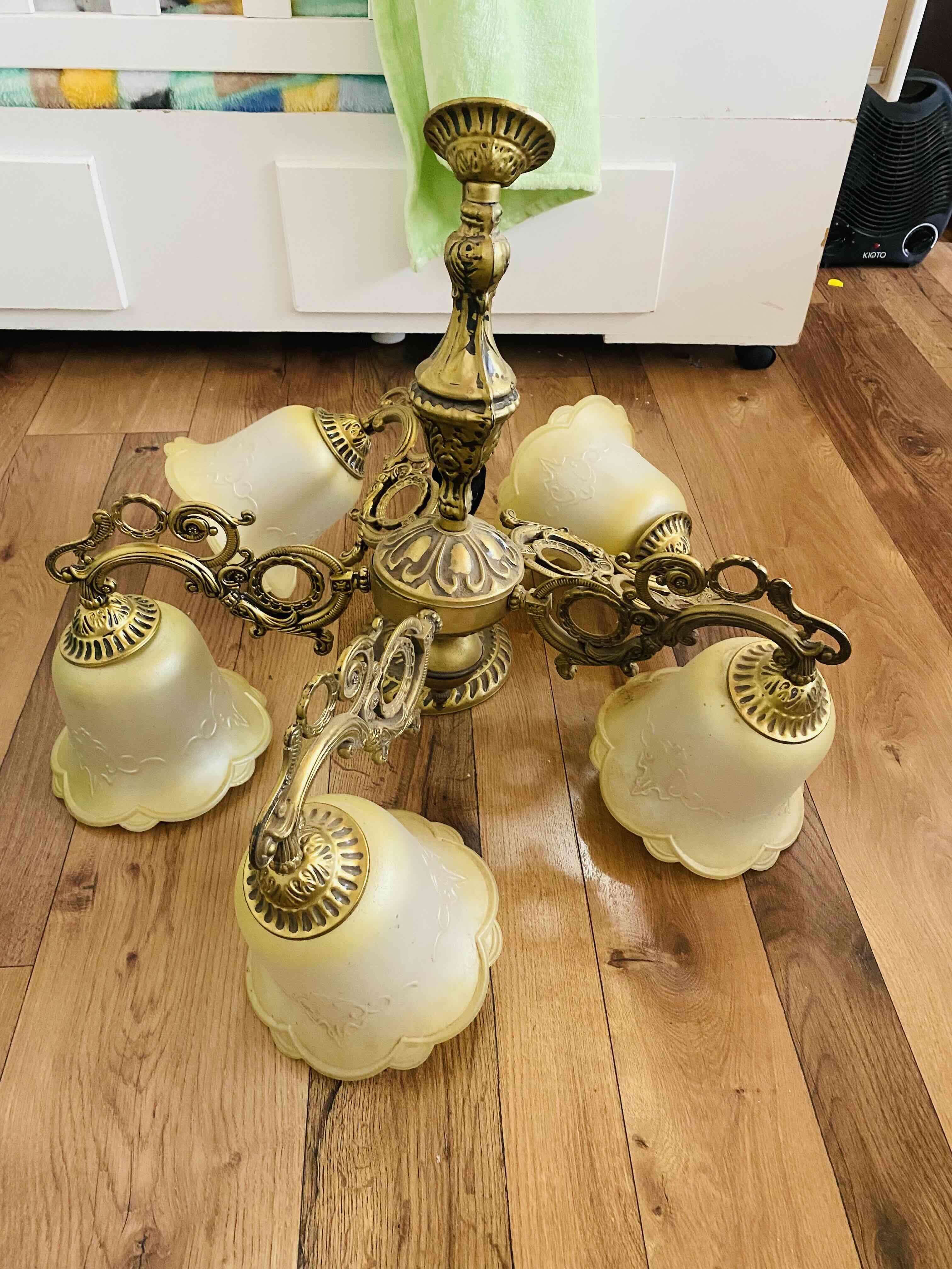 Elegante lámpara de techo estilo vintage, ideal para decorar tu comedor o sala de estar. En buen estado, ofrece iluminación cálida y acogedora.