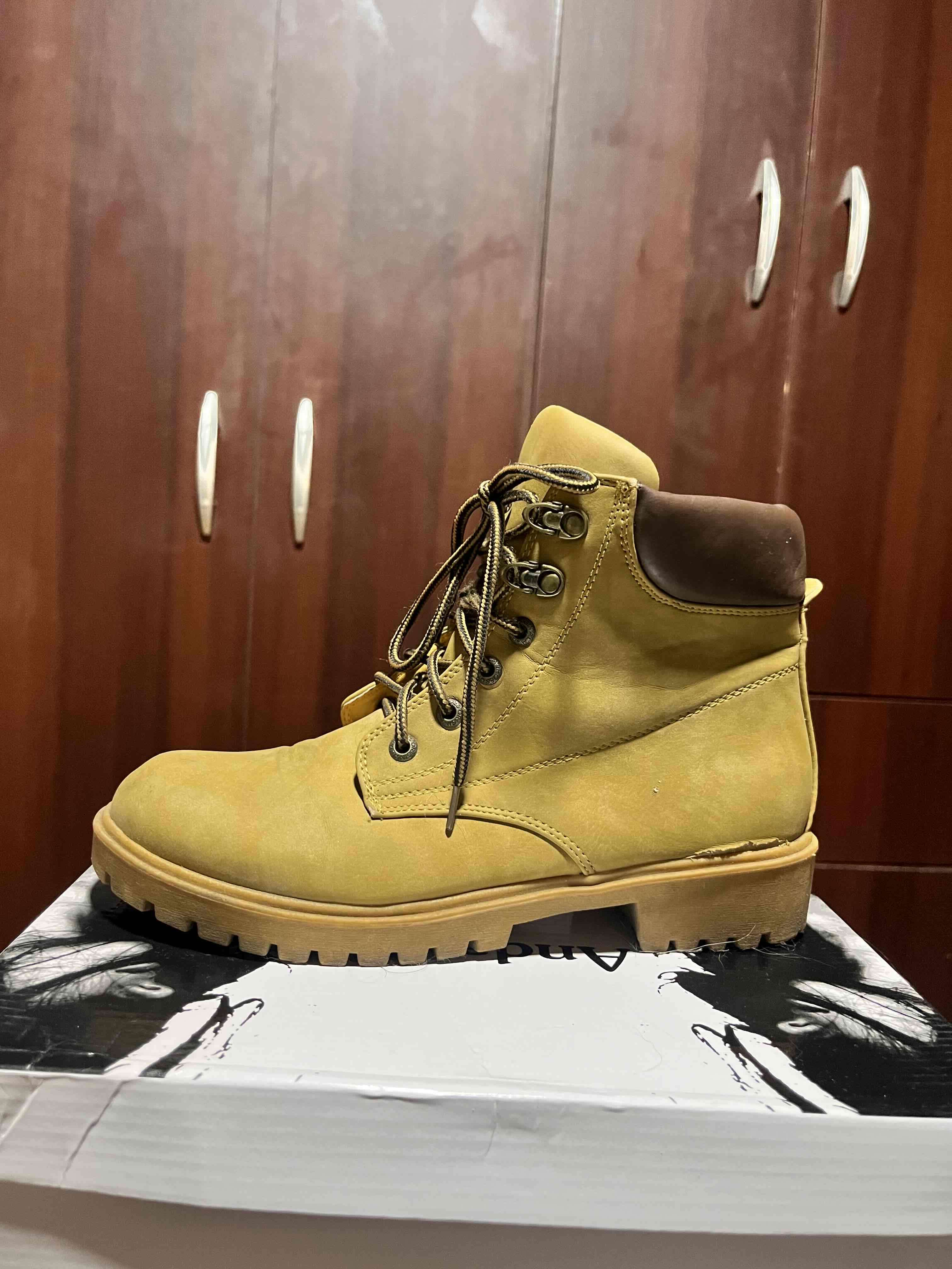 Botas de montaña en color amarillo, ideales para uso diario en la ciudad. En buen estado general.
