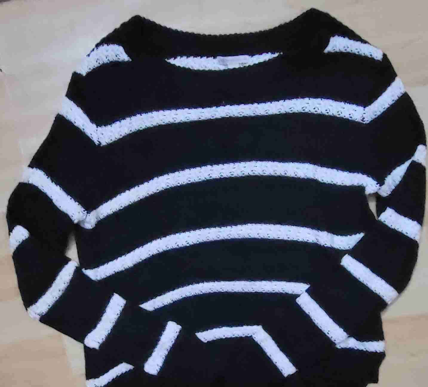 Sweater de rayas blancas y negras, ideal para días frescos. Buen estado y cómodo.