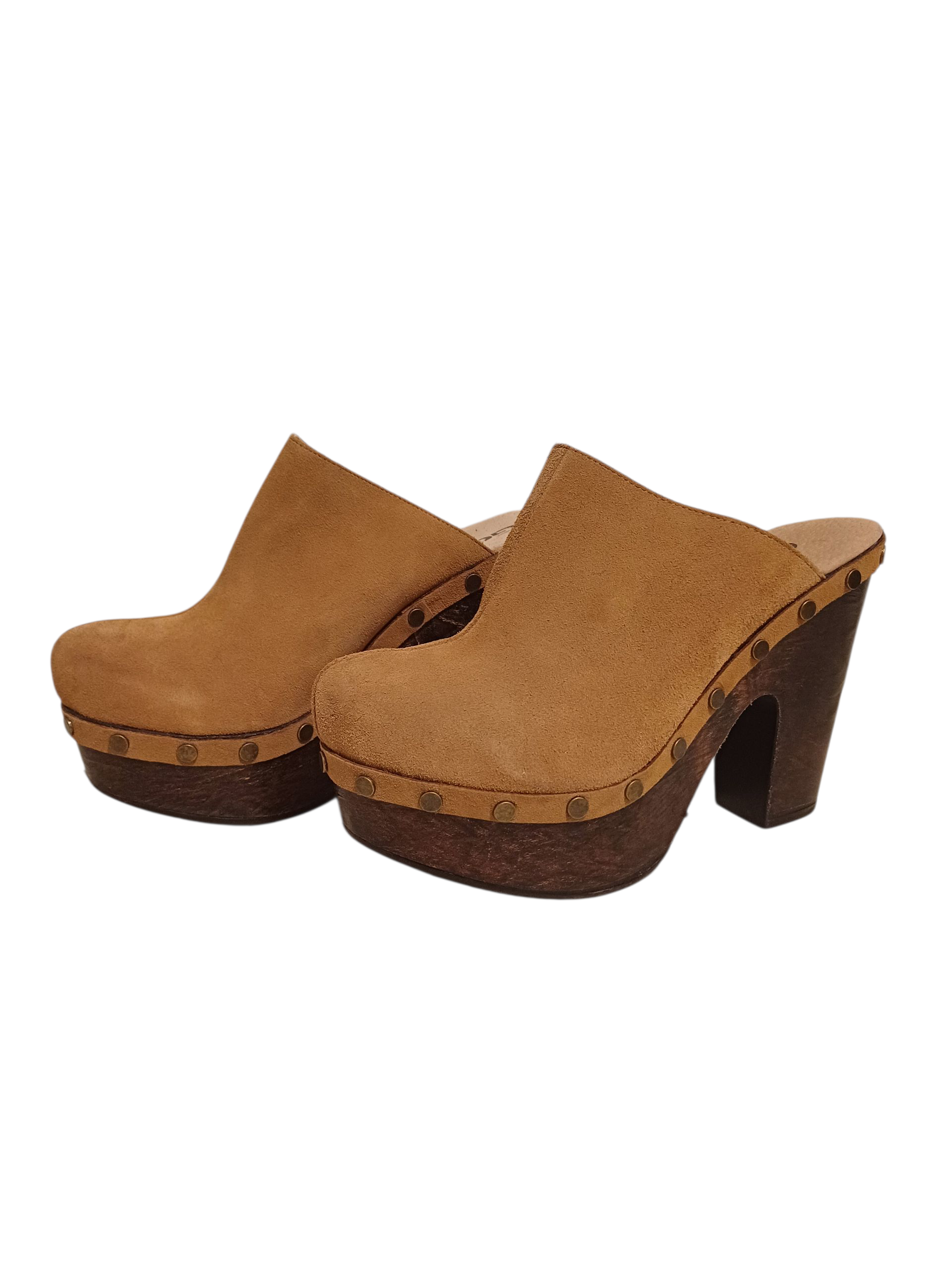 Elegantes zuecos en piel color marrón, perfectos para un look casual. En buen estado.