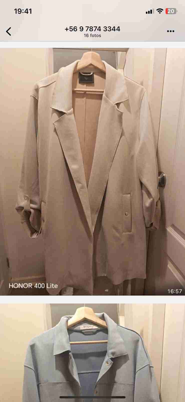 Abrigo en tono beige claro, ideal para ocasiones formales. En buen estado general. Tela gamuzada