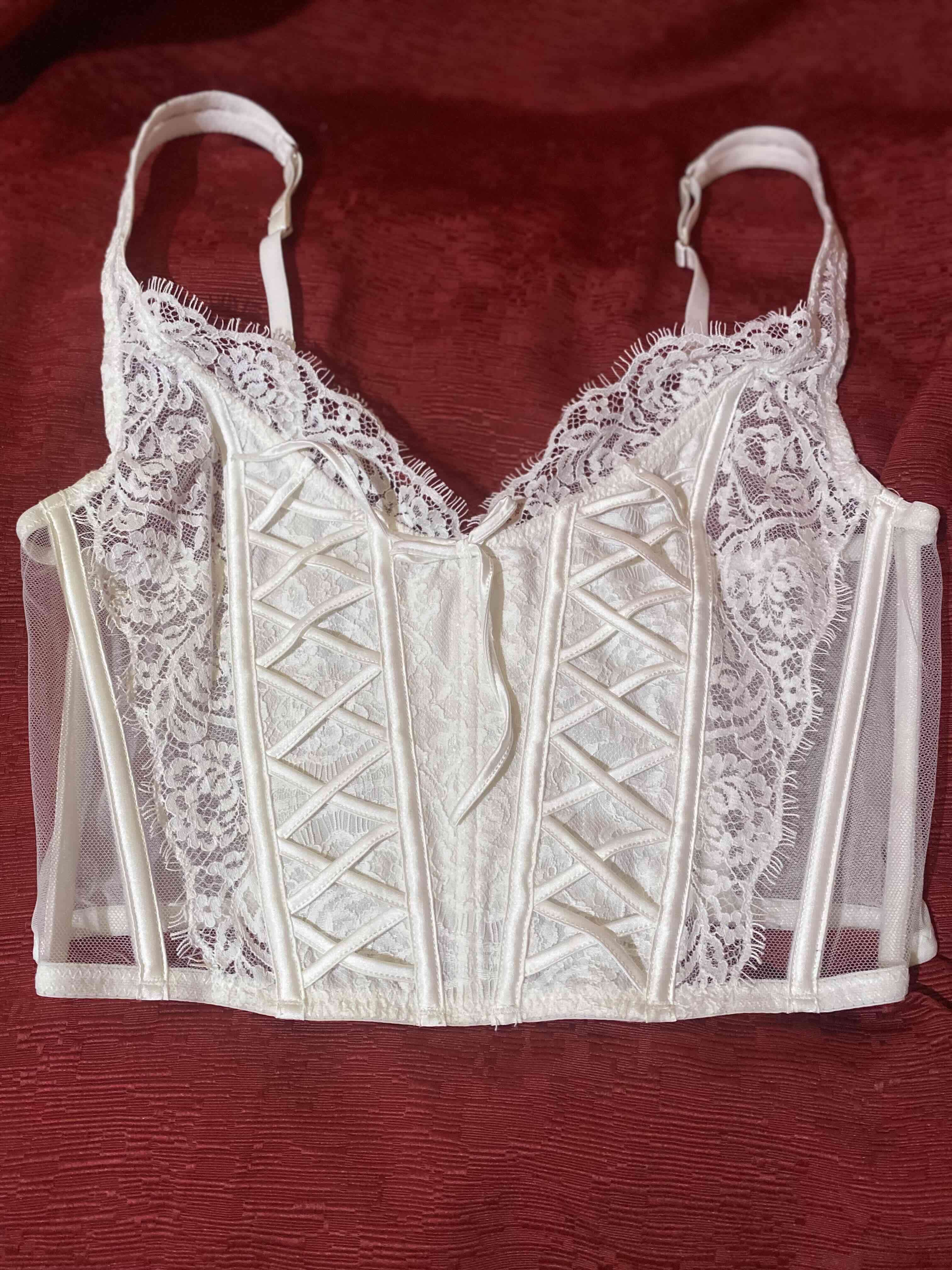 Elegante corset de encaje blanco, perfecto para ocasiones especiales. En buen estado, diseño delicado y sofisticado.