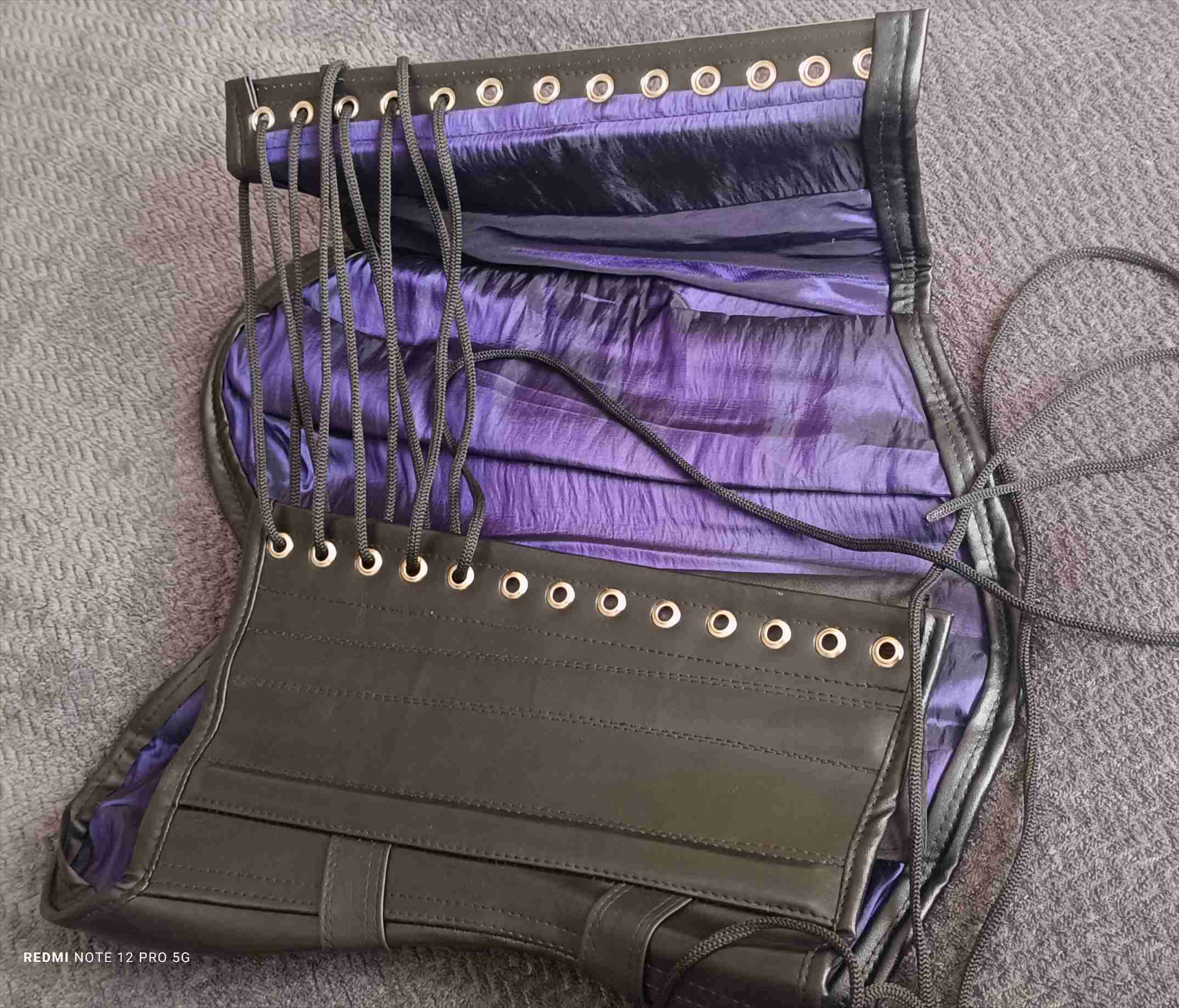 Elegante corset negro con interior de satén púrpura.