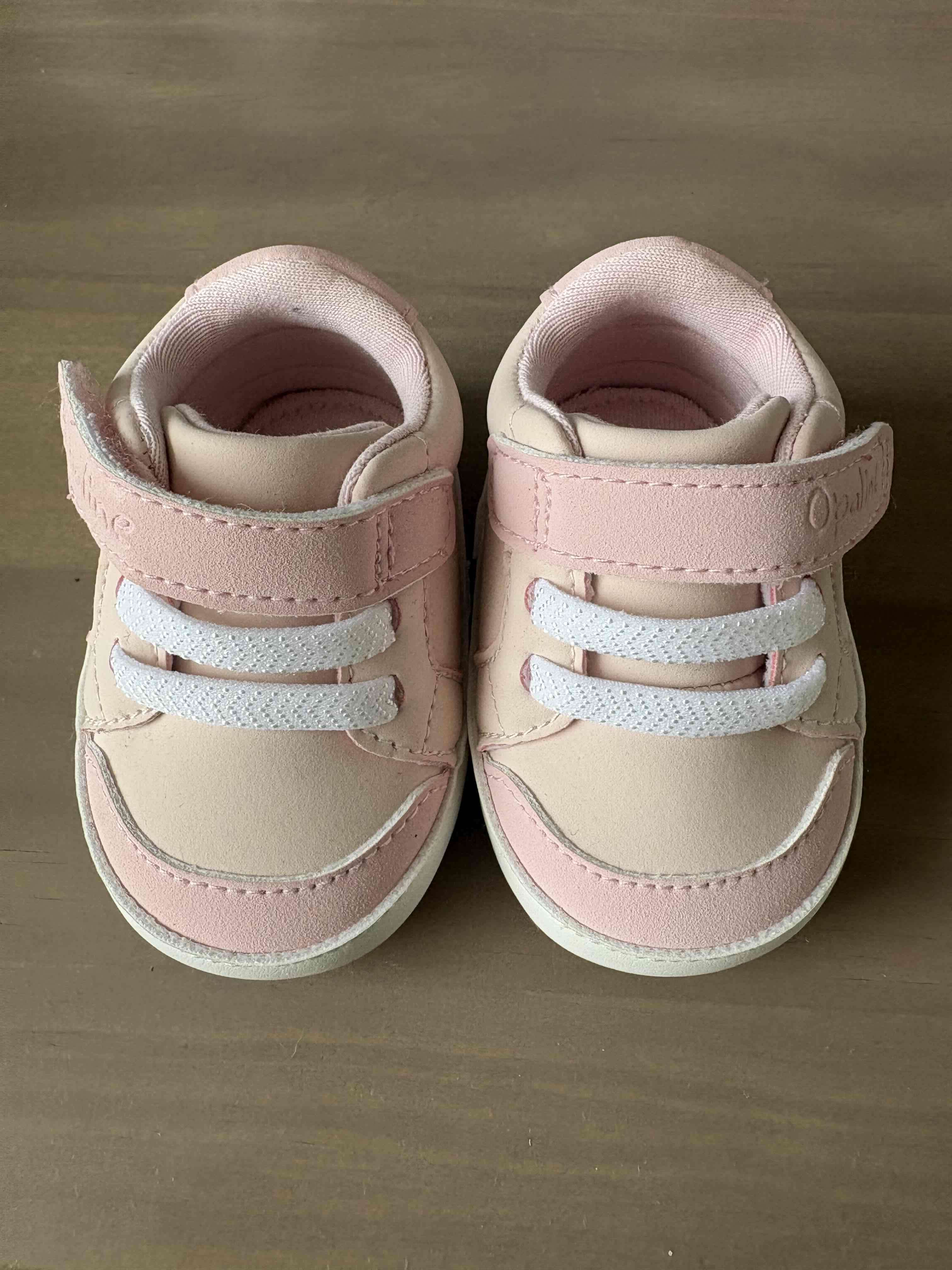 Zapatillas rosas talla 14 para bebé en excelente estado, con cierre de velcro. Perfectas para el día a día.