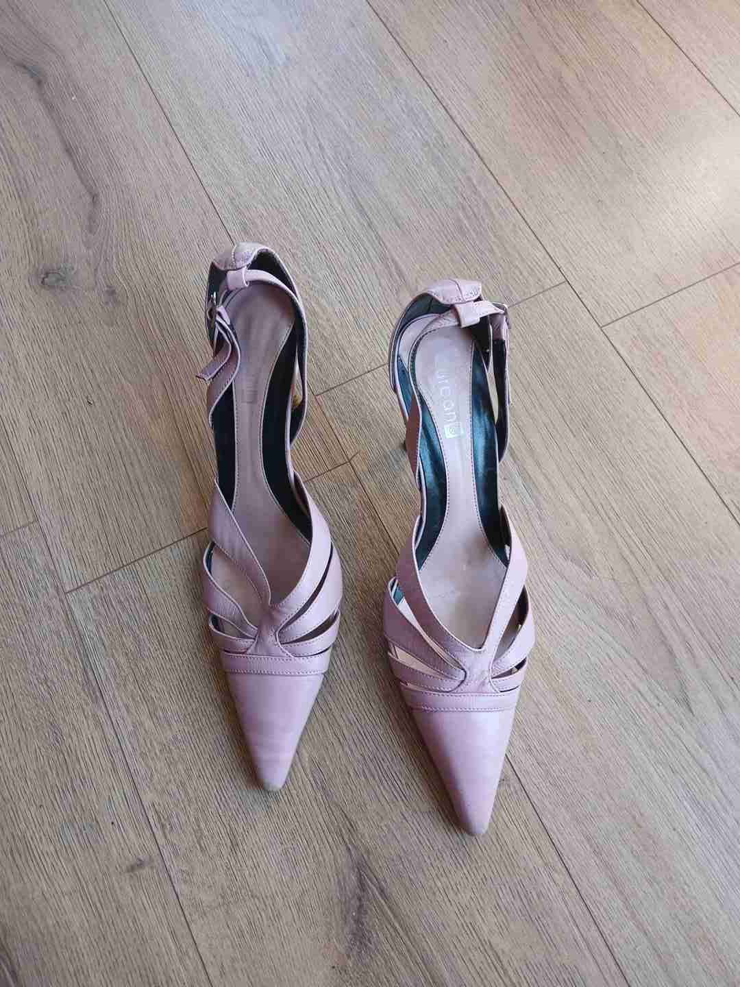 Zapatos de tacón en color rosa, diseño elegante con lazos. Ideales para eventos formales. En buen estado. Poco uso.