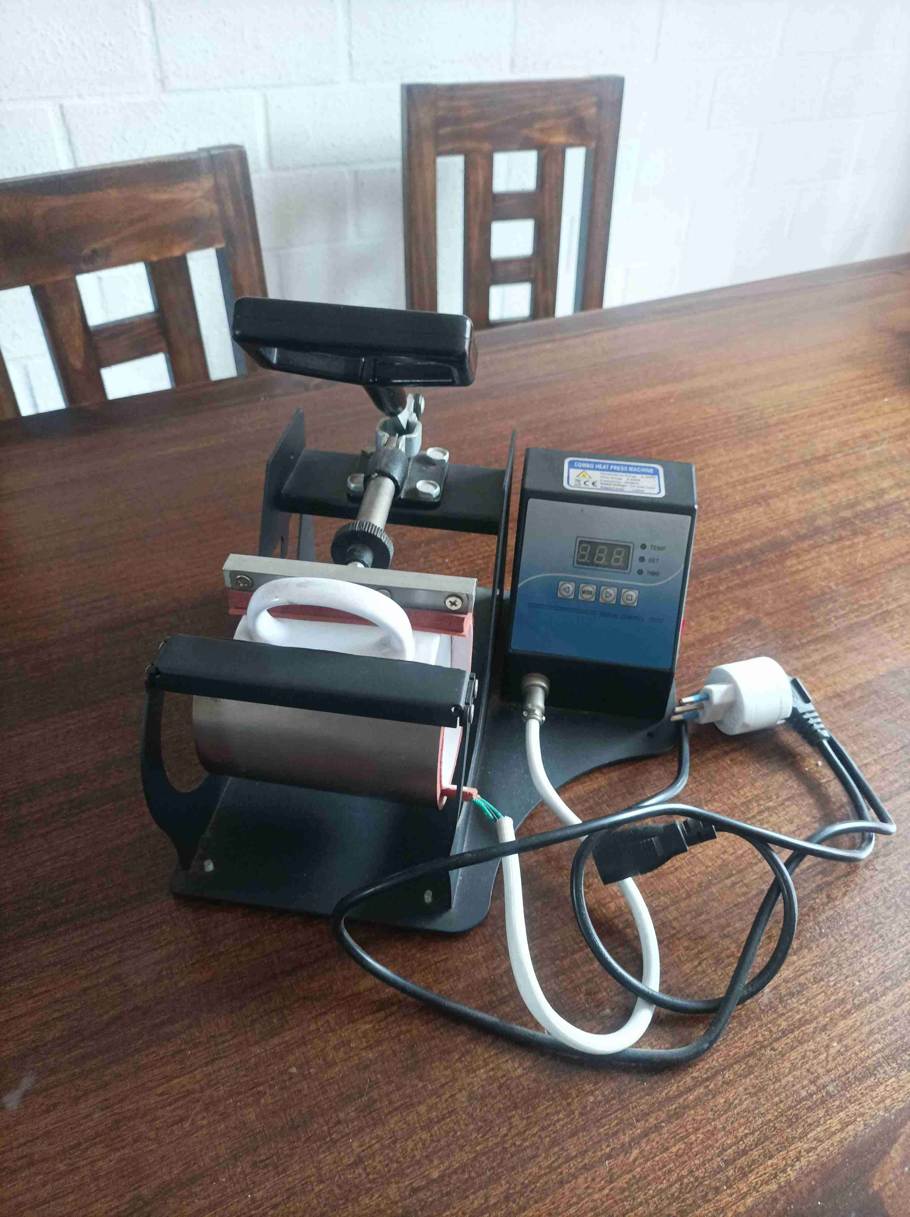 Máquina ideal para personalizar tazas con calor. En buen estado, lista para usar. Perfecta para emprendedores creativos. Tazas de 11 onzas. De regalo 6 tazas blancas para sublimar y 6 cintas térmicas.