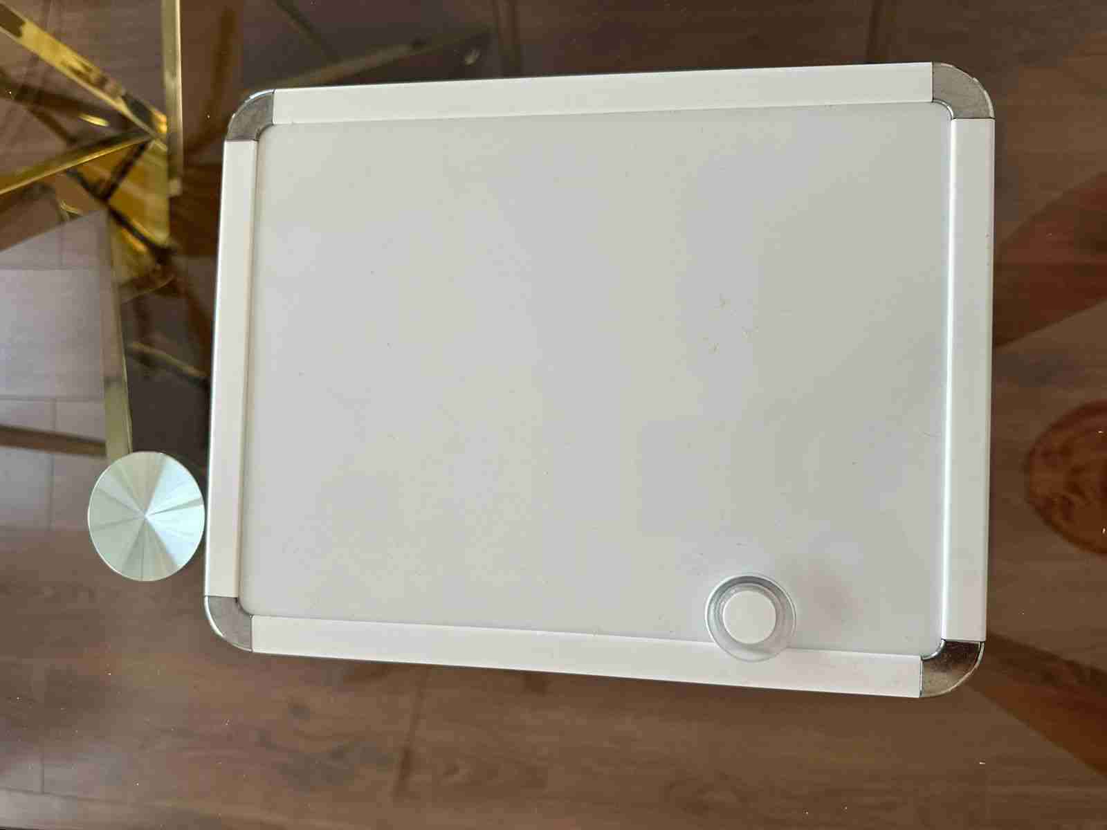 Tabla blanca ideal para notas o planificación diaria. Buen estado y funcionalidad magnética.