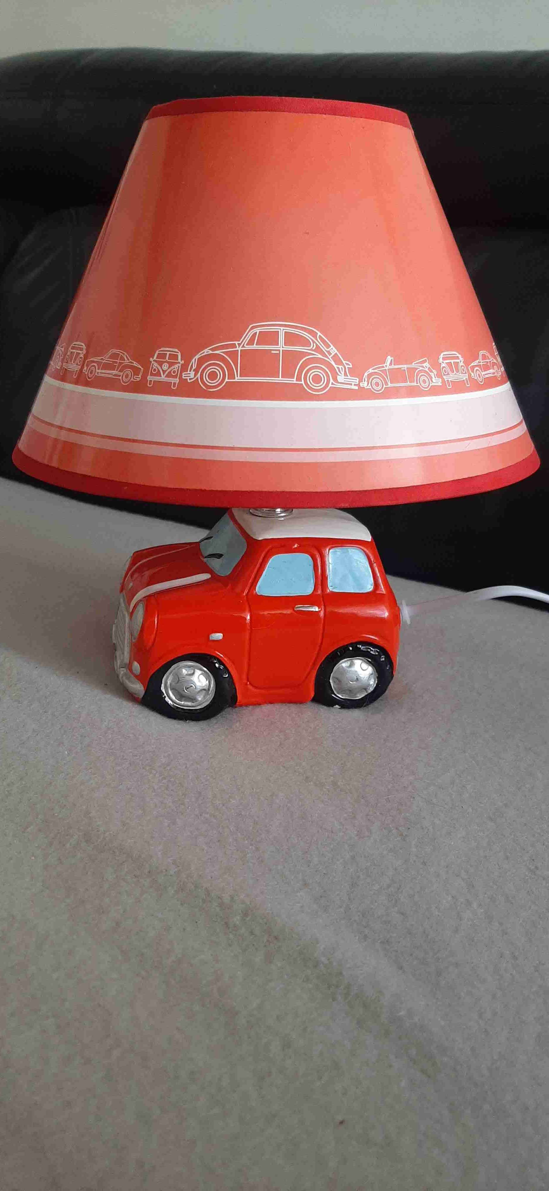 Lámpara decorativa para niños con base de auto rojo. Ideal para decorar habitaciones infantiles. En buen estado.