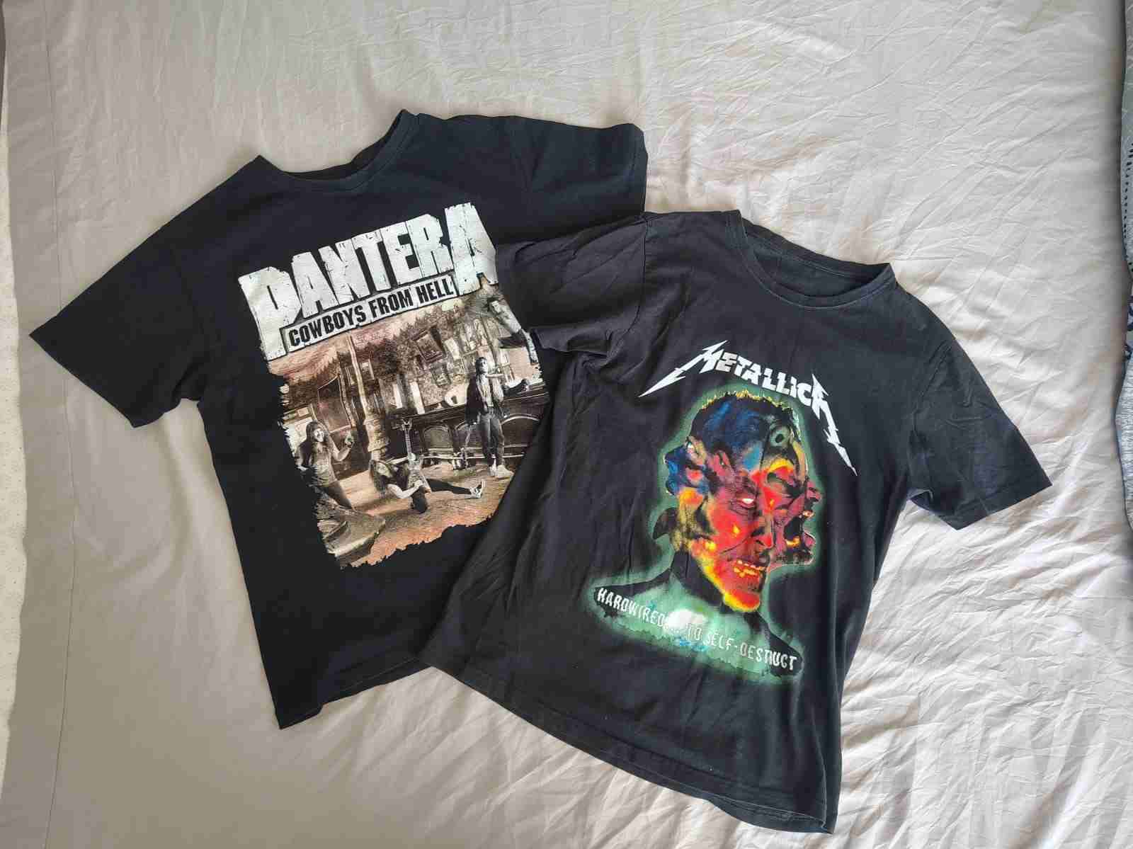Poleras negras de bandas icónicas, en buen estado, perfectas para fanáticos del rock. 2x10.000
