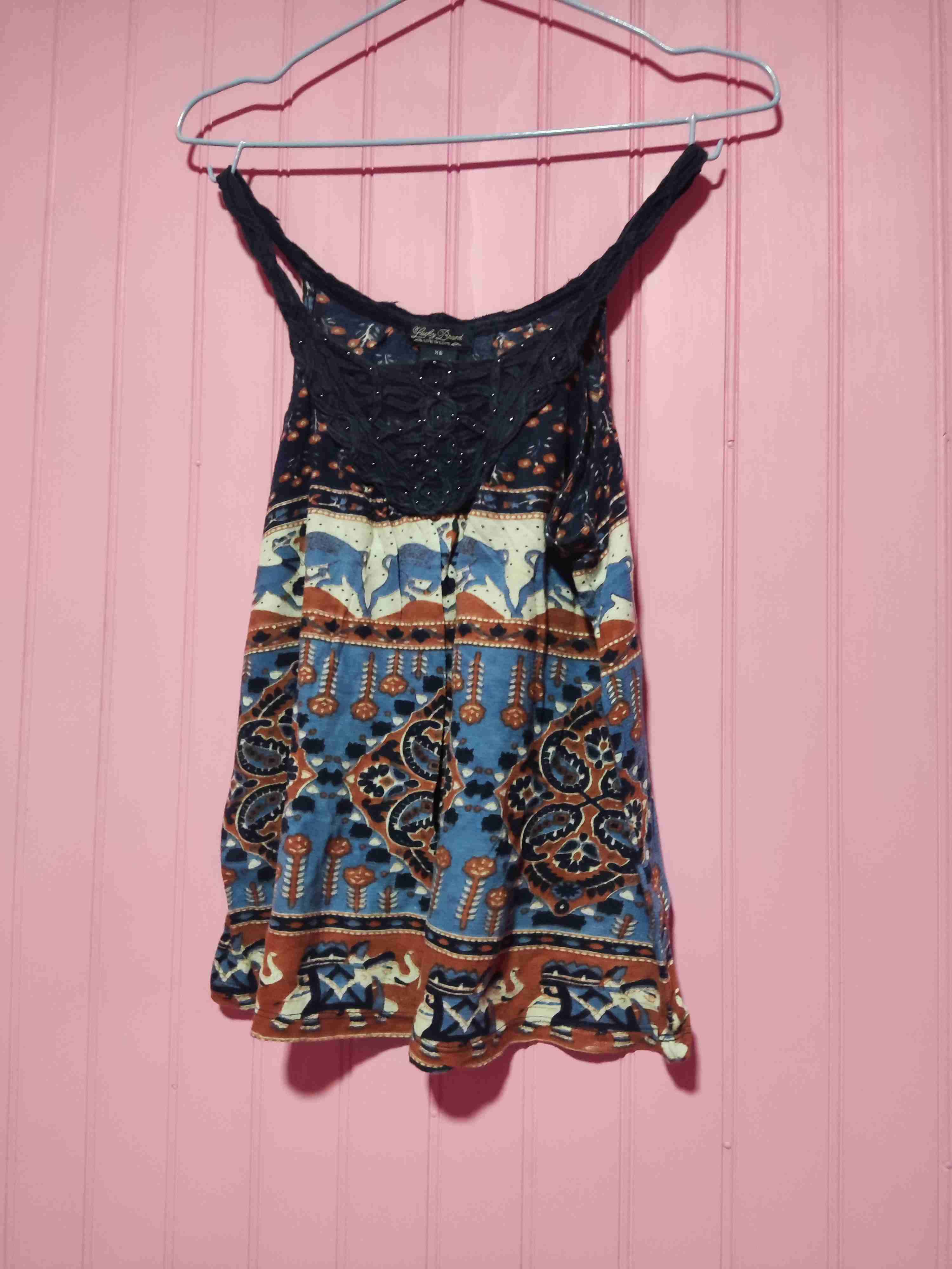 Blusa sin mangas con diseño bohemio, cómoda y en buen estado general. Ideal para días de verano.