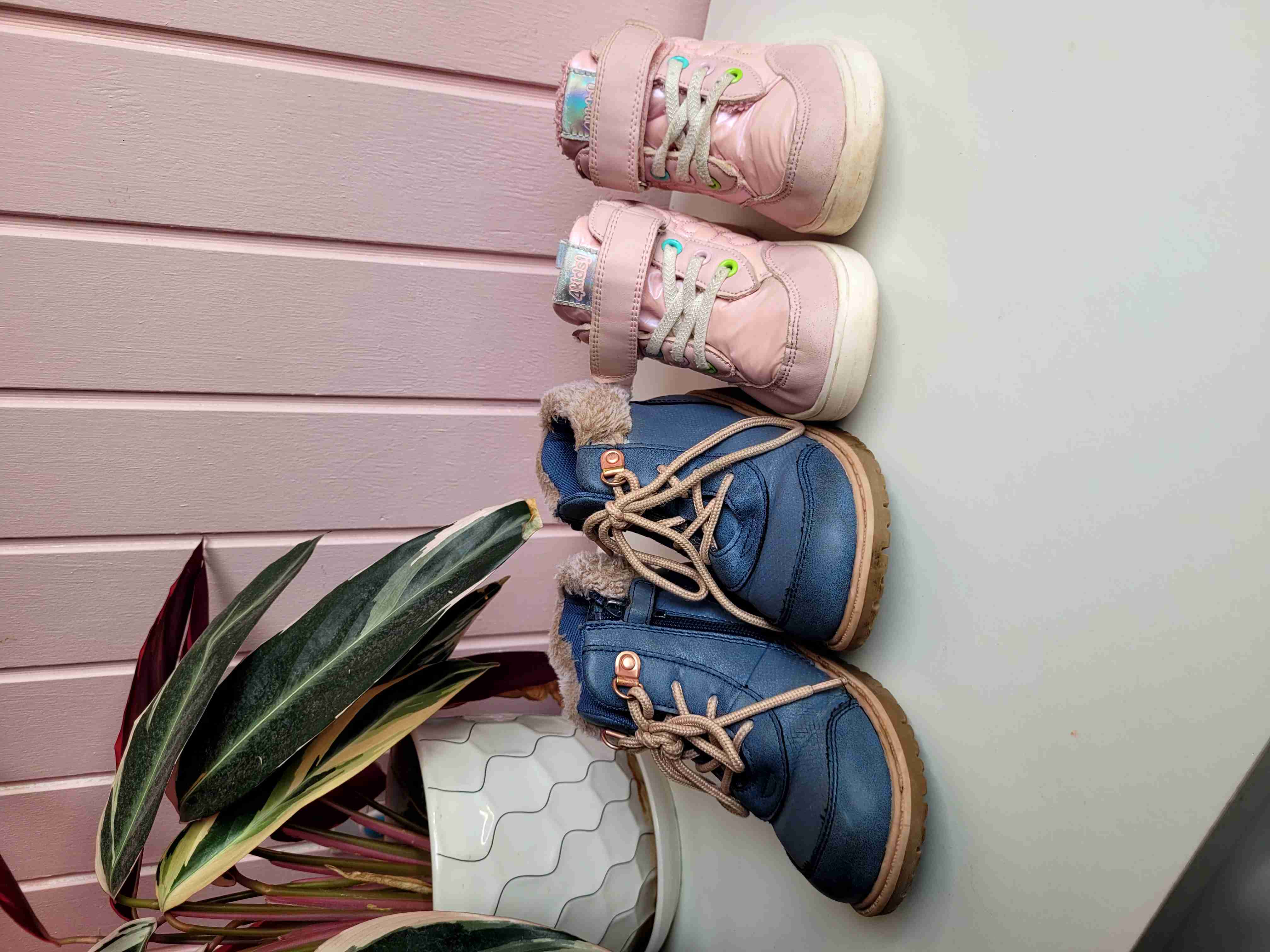 Zapatos para niñas en color azul marca colloky y zapatillas con caña color rosa marca 4kids, perfectos para el invierno. Con leves señales de uso. Talla 27 ambos.