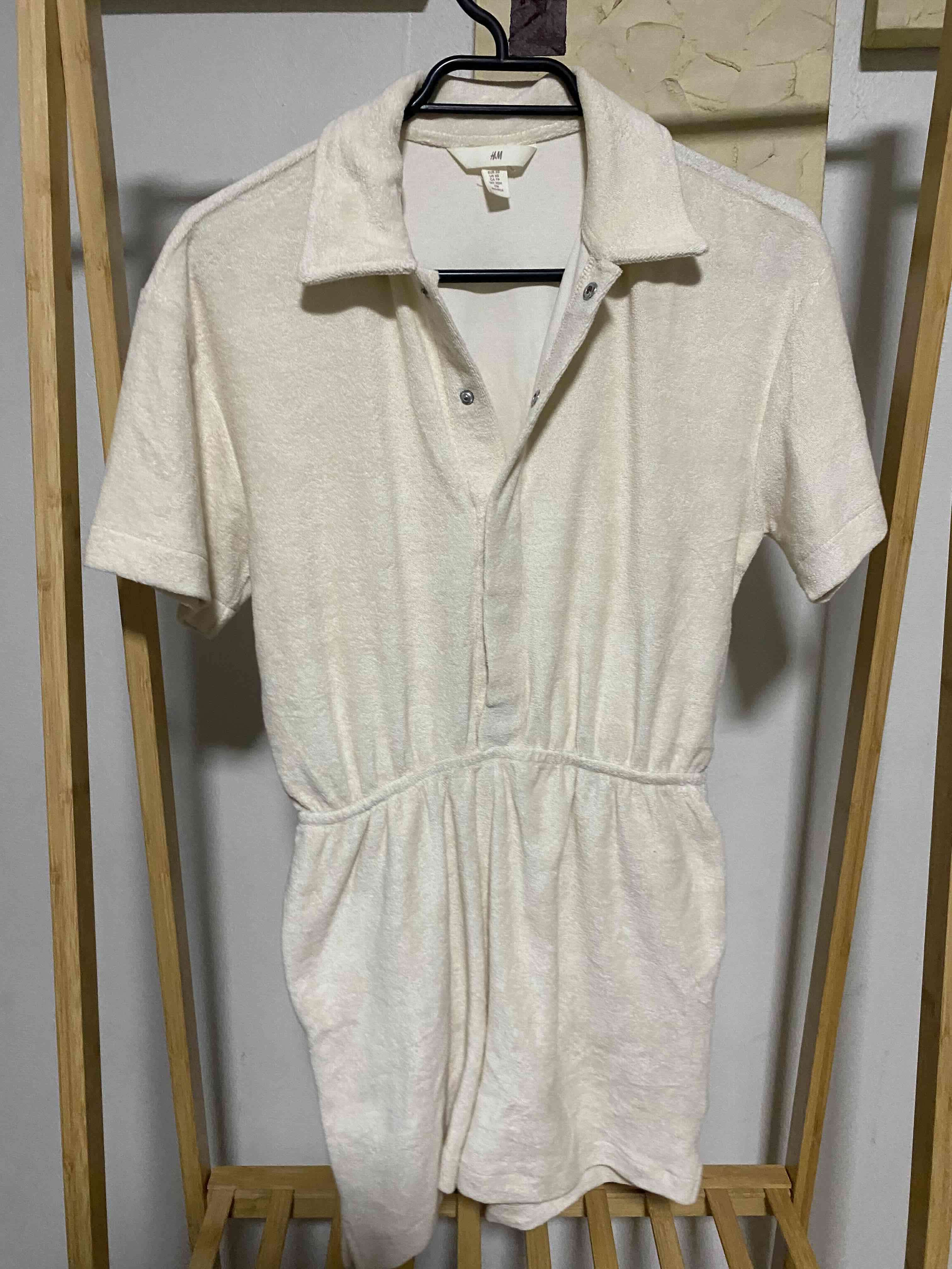 Enterito color blanco con textura de felpa, ideal para el verano. En buen estado con ligeros signos de uso.