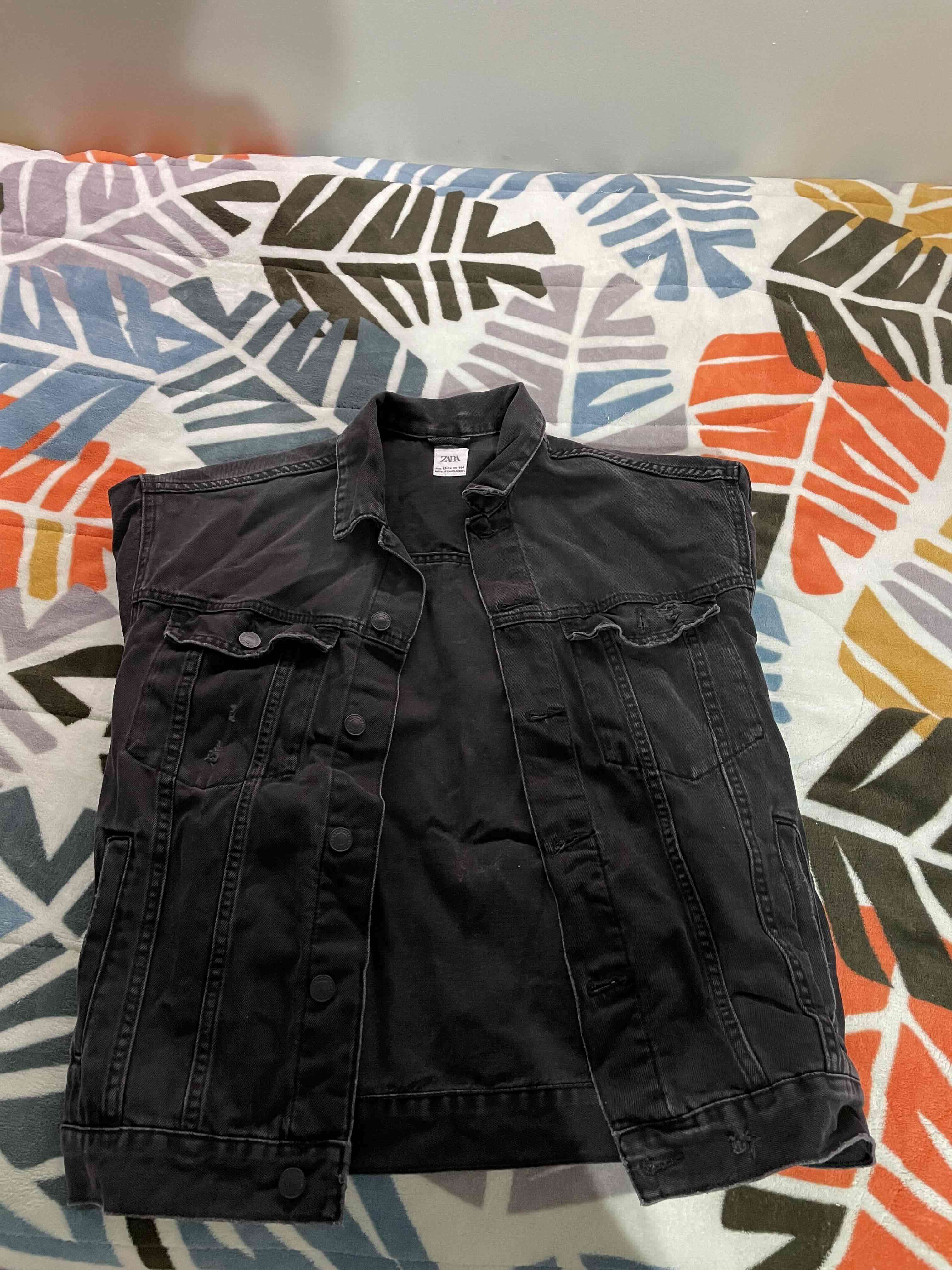 Chaleco de mezclilla sin mangas en color negro, estilo casual. Perfecto para usar sobre poleras o camisas. En buen estado con leves signos de uso.