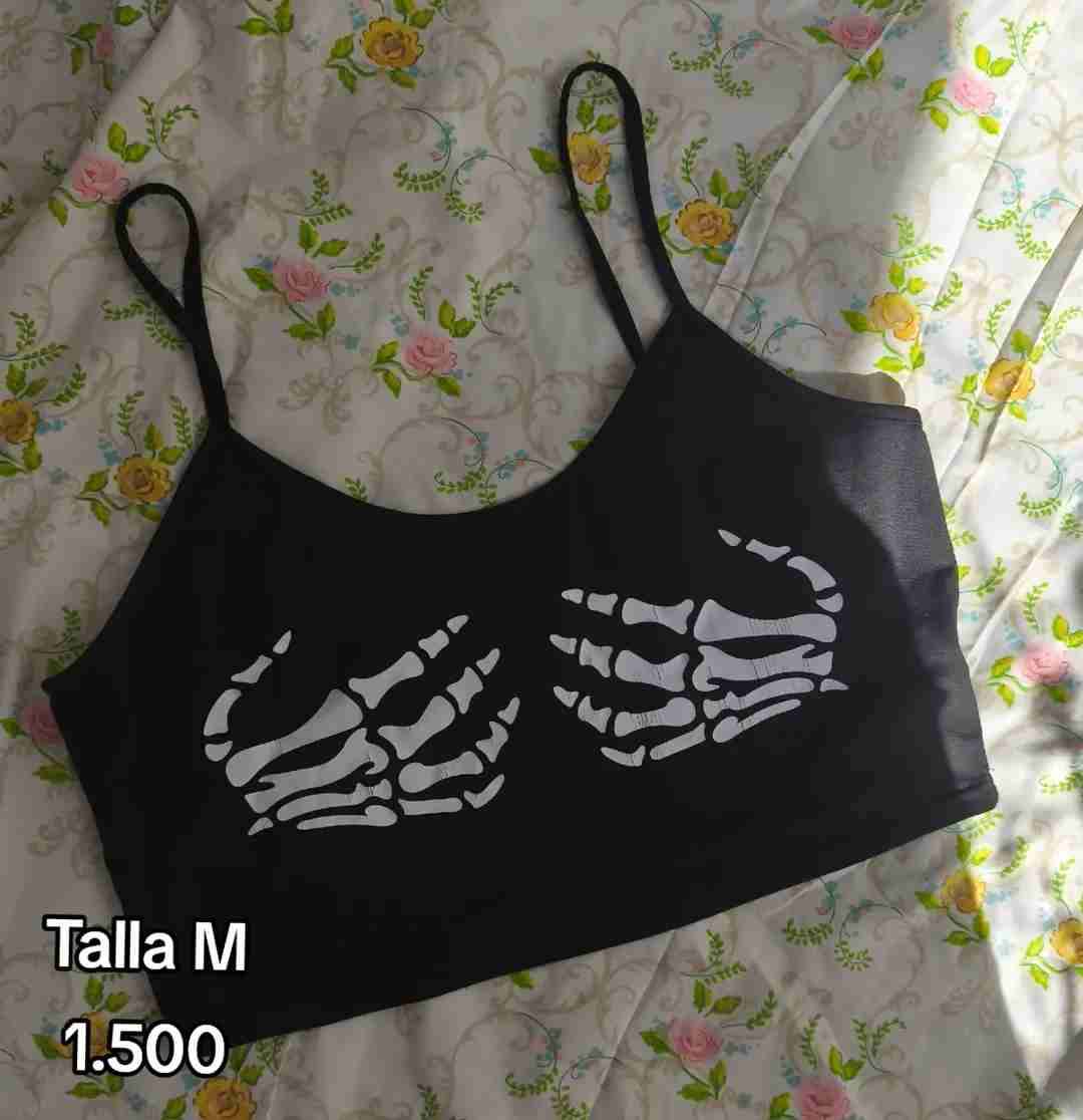 Top tipo bandeau en negro con diseño de manos esqueléticas al frente. Ideal para looks casuales.