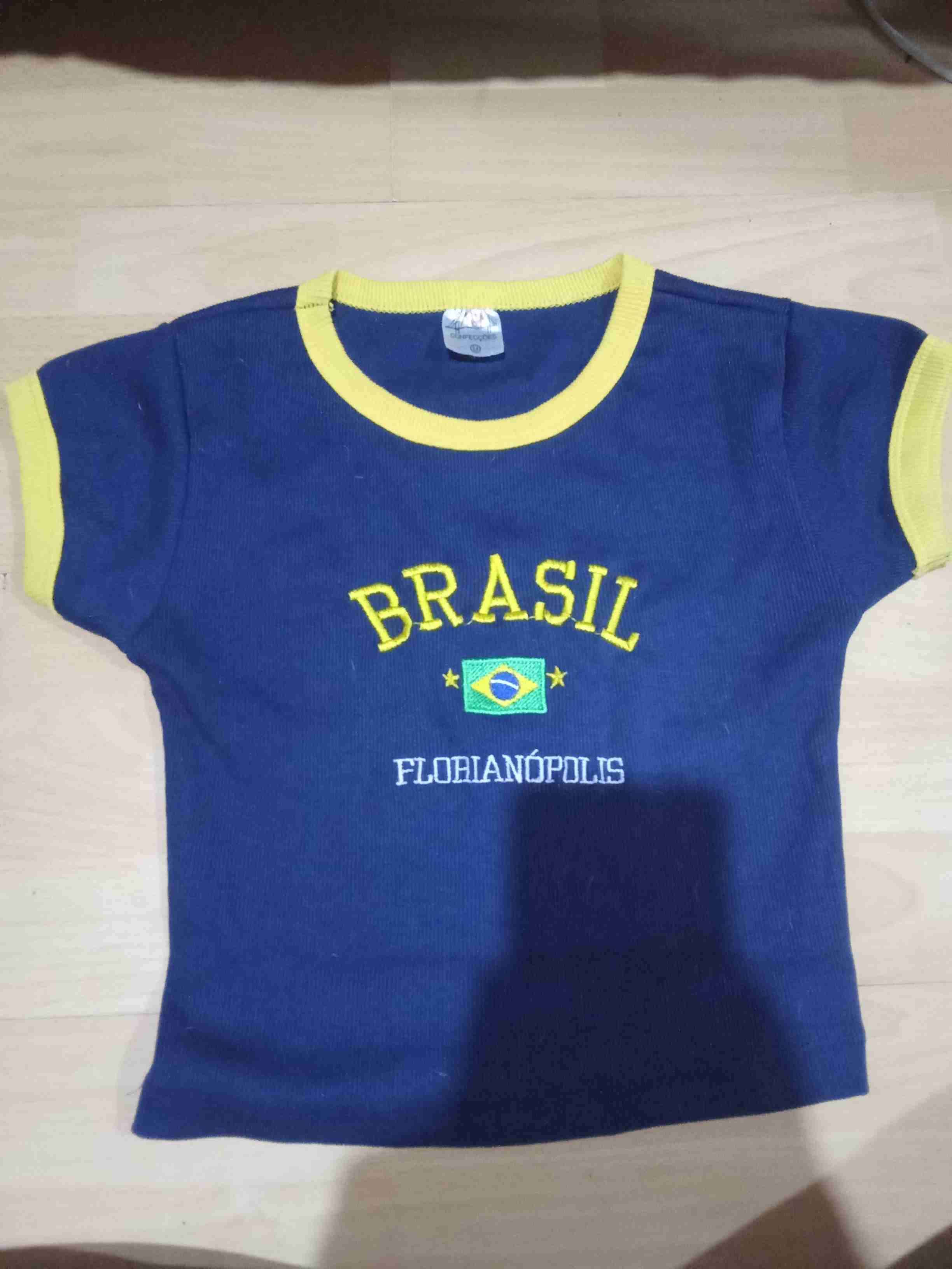 Polera azul marino con detalles amarillos, temática de Brasil. Ideal para ocasiones casuales.