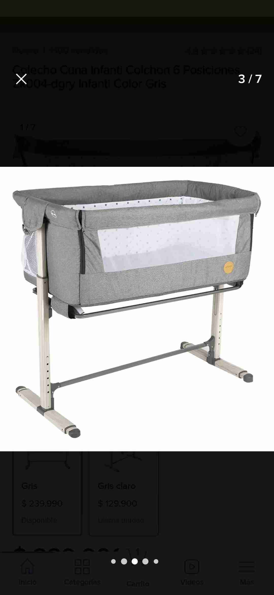Cuna colecho en color gris, ideal para bebés. Estado general bueno, práctica y ajustable a diferentes alturas y tiene hasta su bolso donde se guarda.
