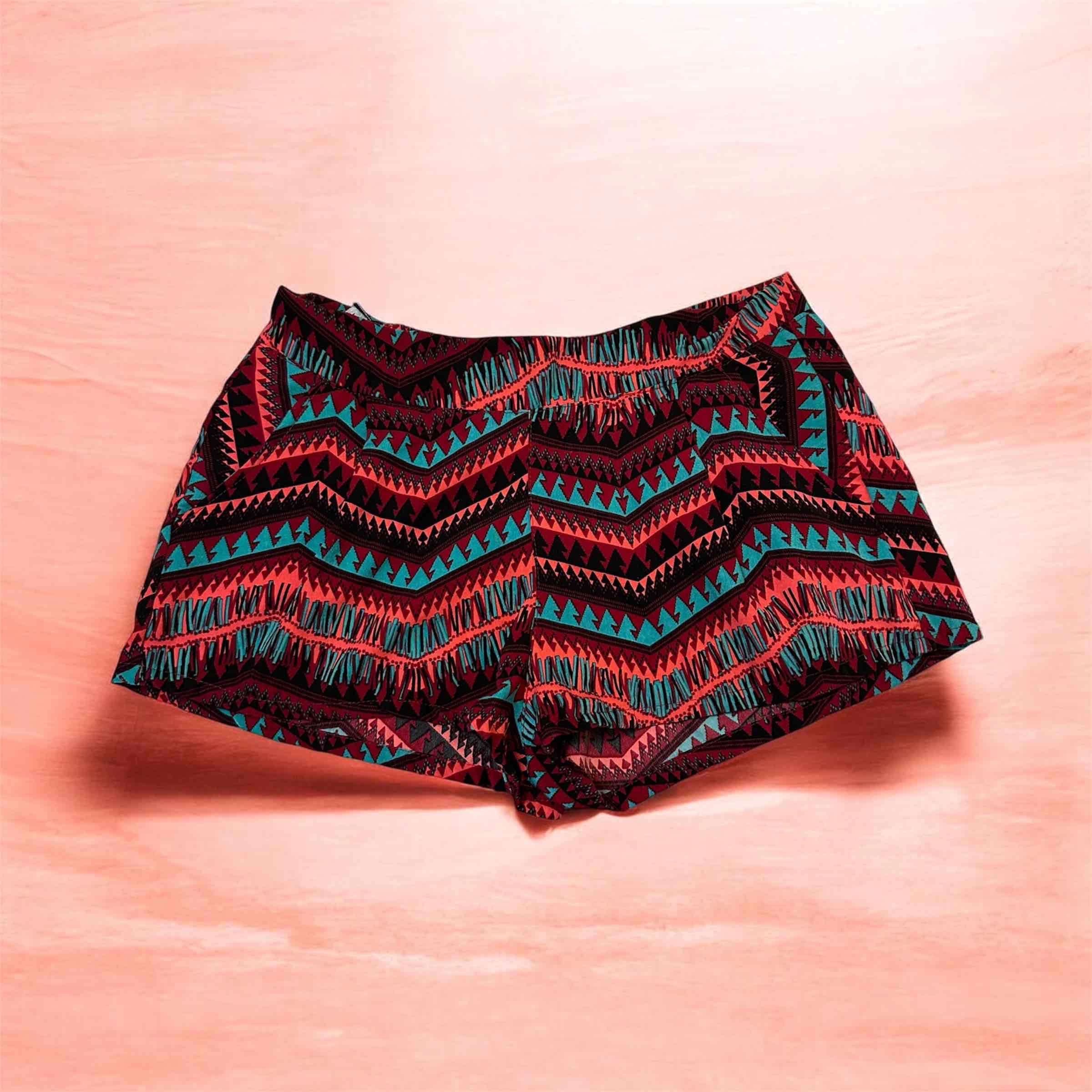 Shorts con diseño zigzag en colores vibrantes. Perfectos para un look veraniego informal. En buen estado general.