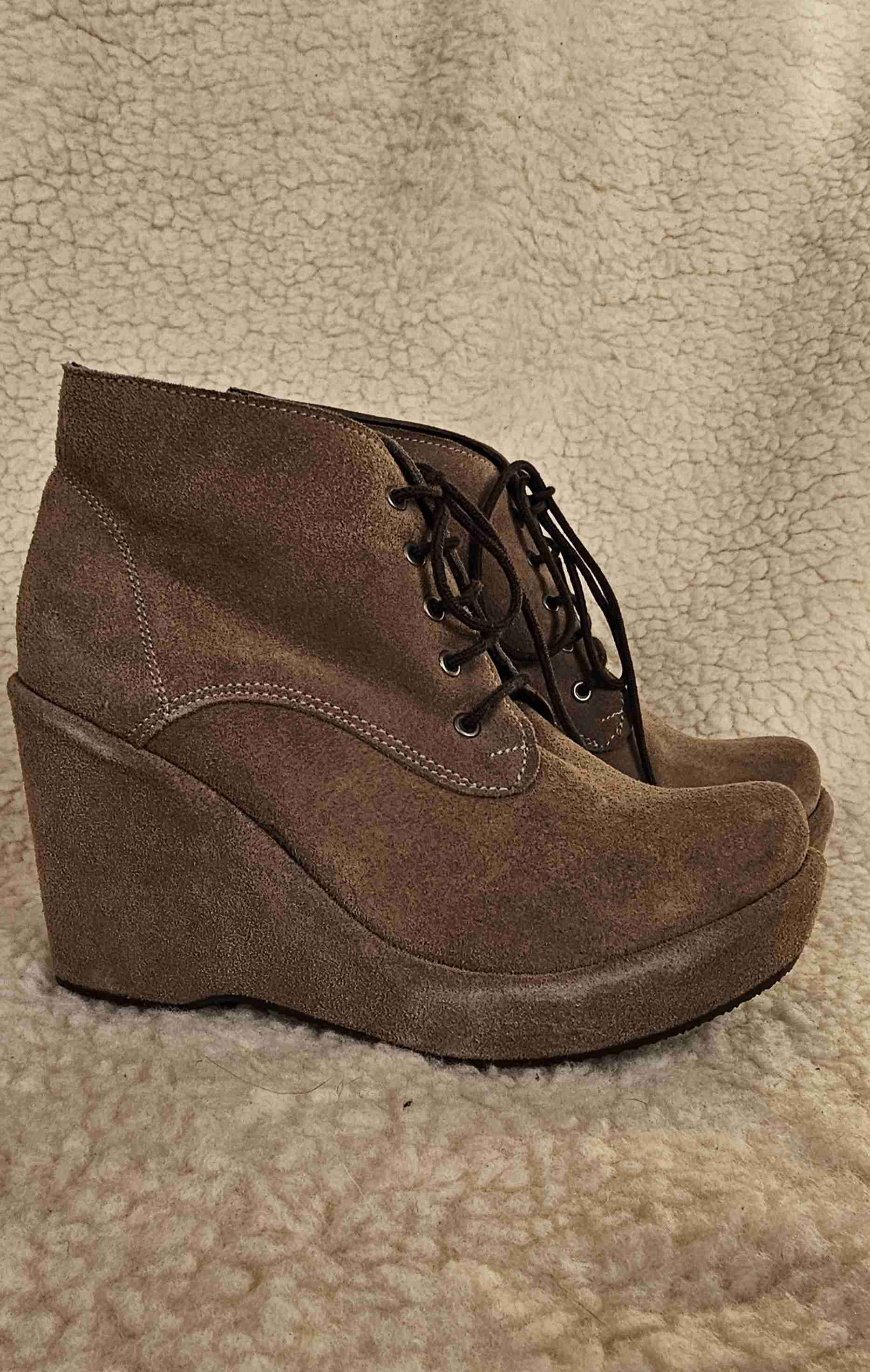 Botines de plataforma en gamuza marrón, estilo casual.ideales para usar en otoño.
