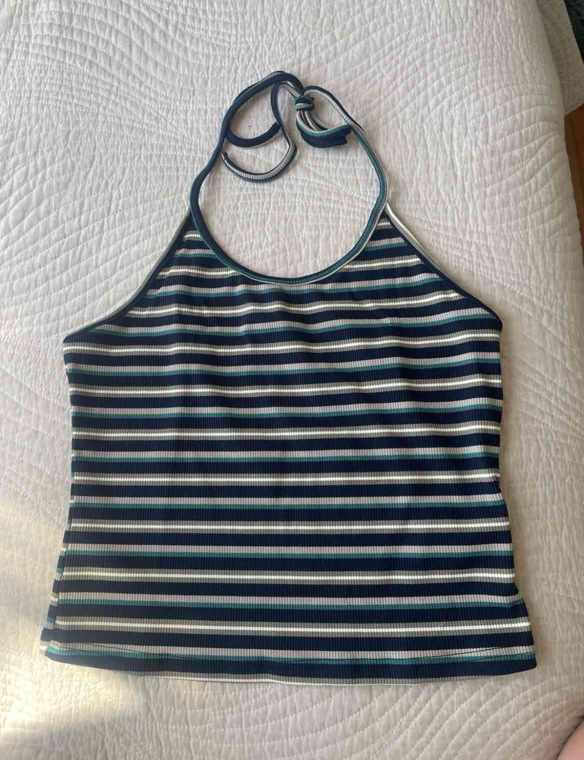 Top halter rayado verde y blanco