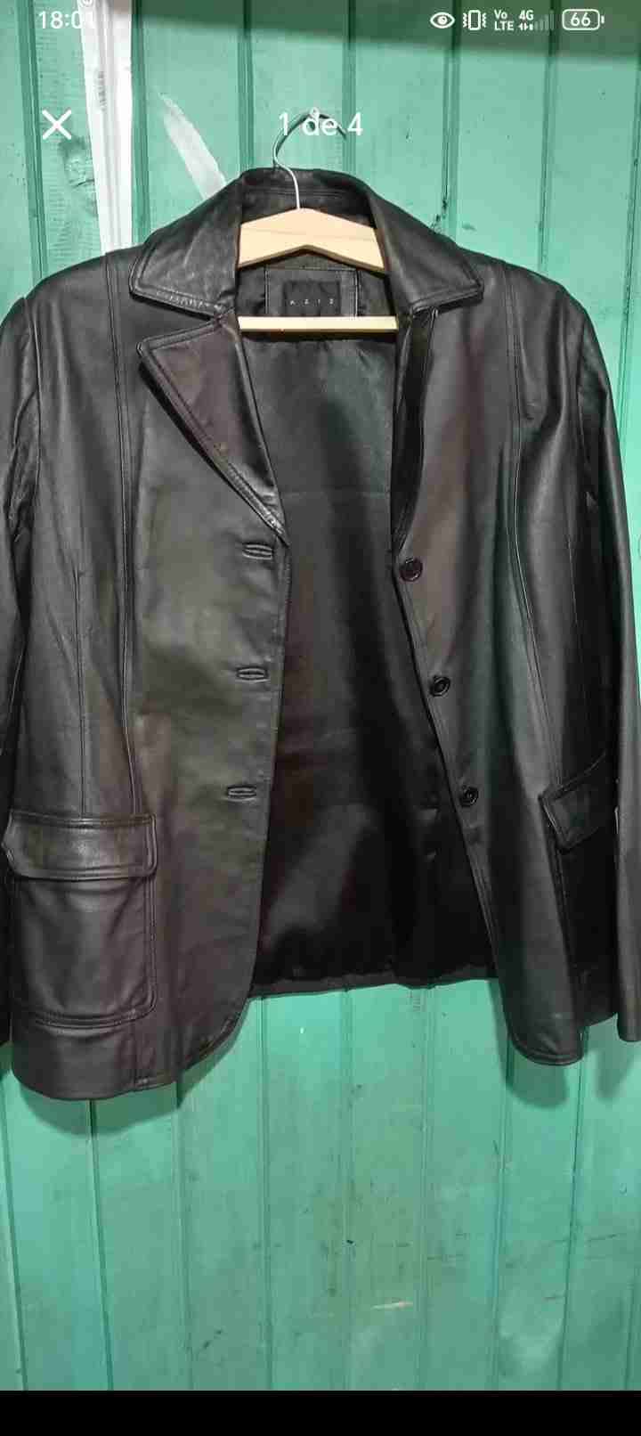 Chaqueta de cuero negra, ideal para un look elegante. En buen estado, perfecta para el invierno.