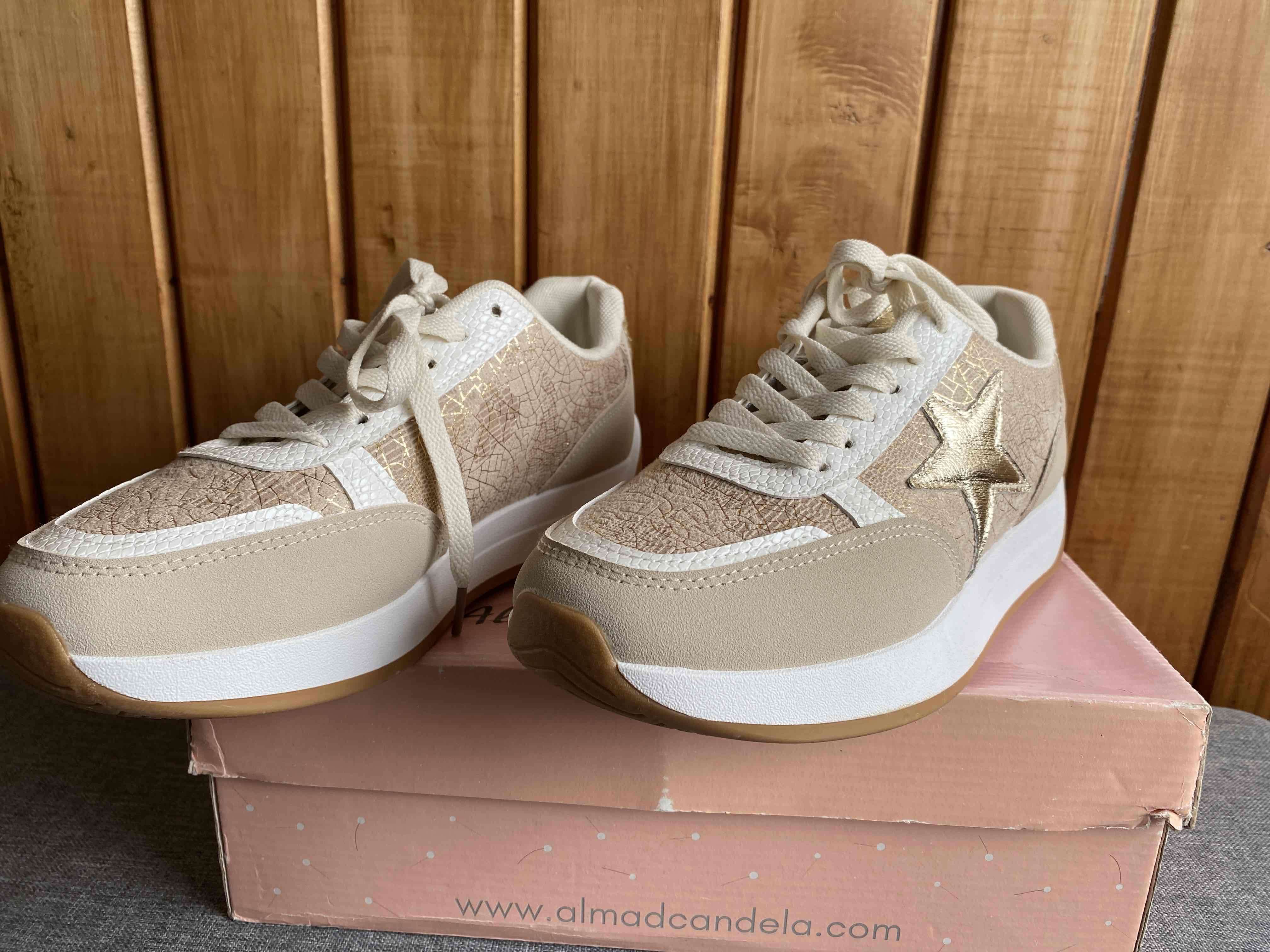 Zapatillas beige en buen estado, con estrella dorada. Perfectas para el uso diario.